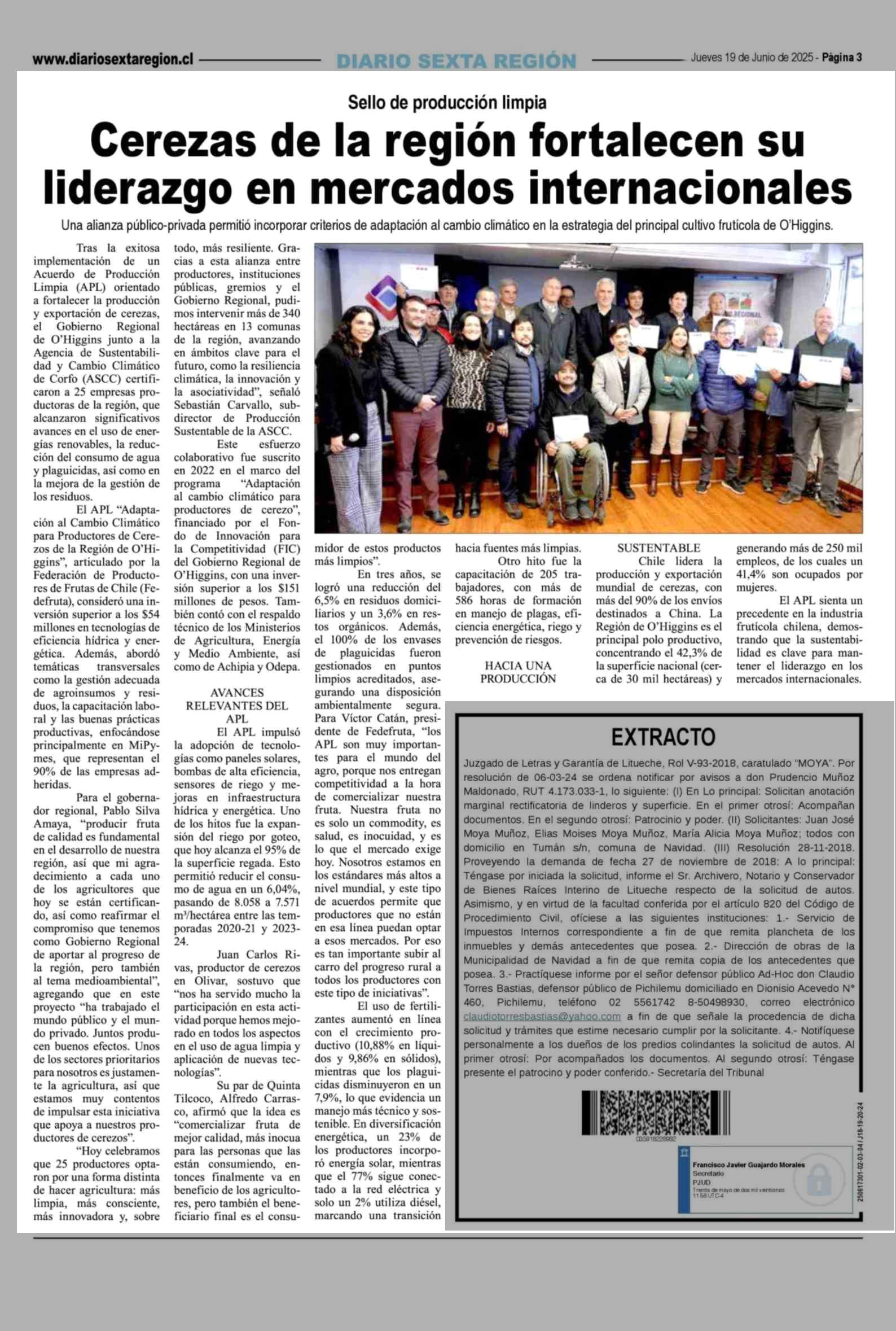 | Fecha: | 19-06-2025 | Sector: | Noticia general | Región: | Región del Libertador General Bernardo O'Higgins |