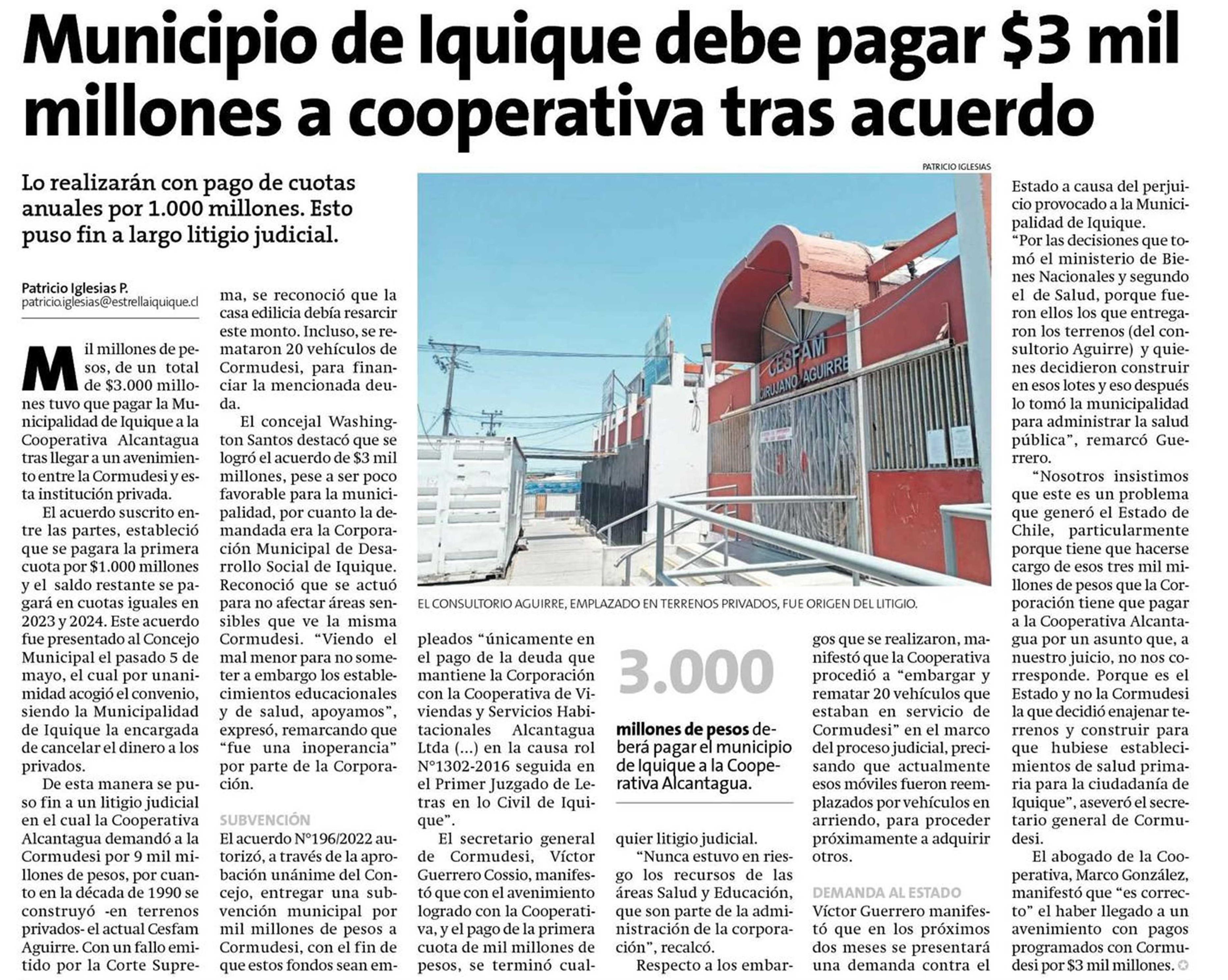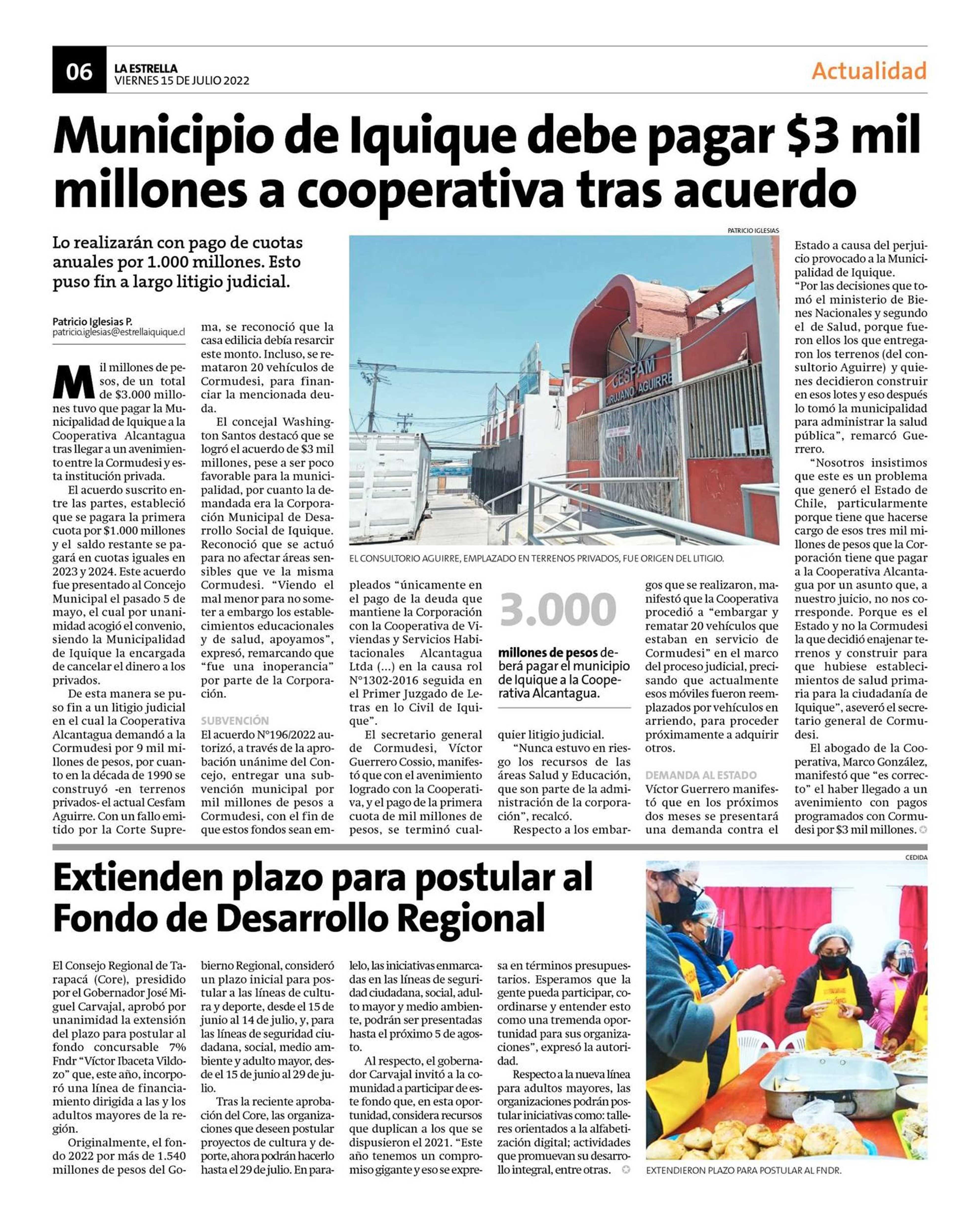 Municipio de Iquique debe pagar $3 mil millones a cooperativa tras acuerdo 15-07-2022 La Estrella de Iquique |