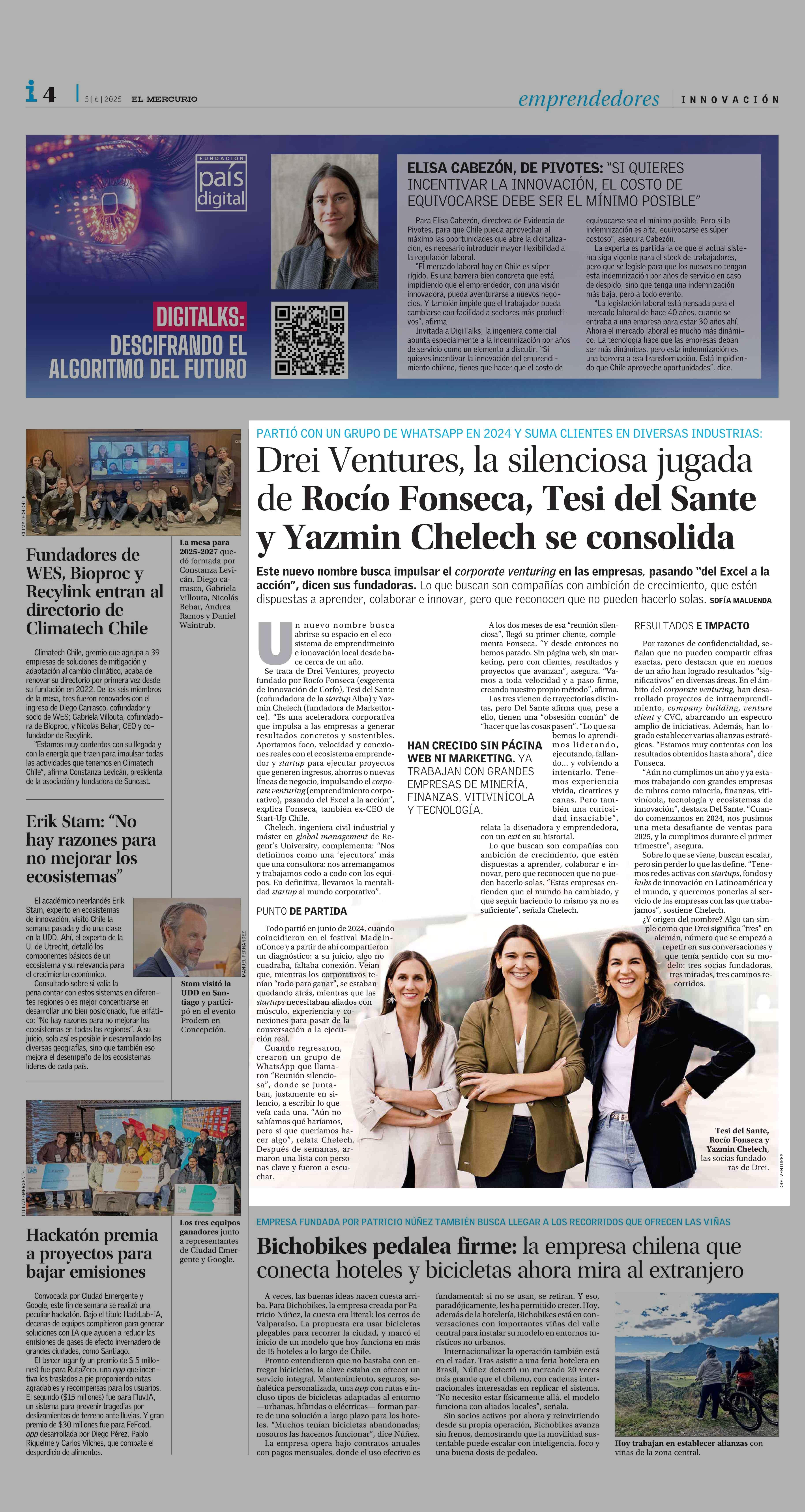 Drei Ventures, la silenciosa jugada de Rocío Fonseca, Tesi del Sante y Yazmin Chelech se consolida 05-06-2025 El Mercurio |