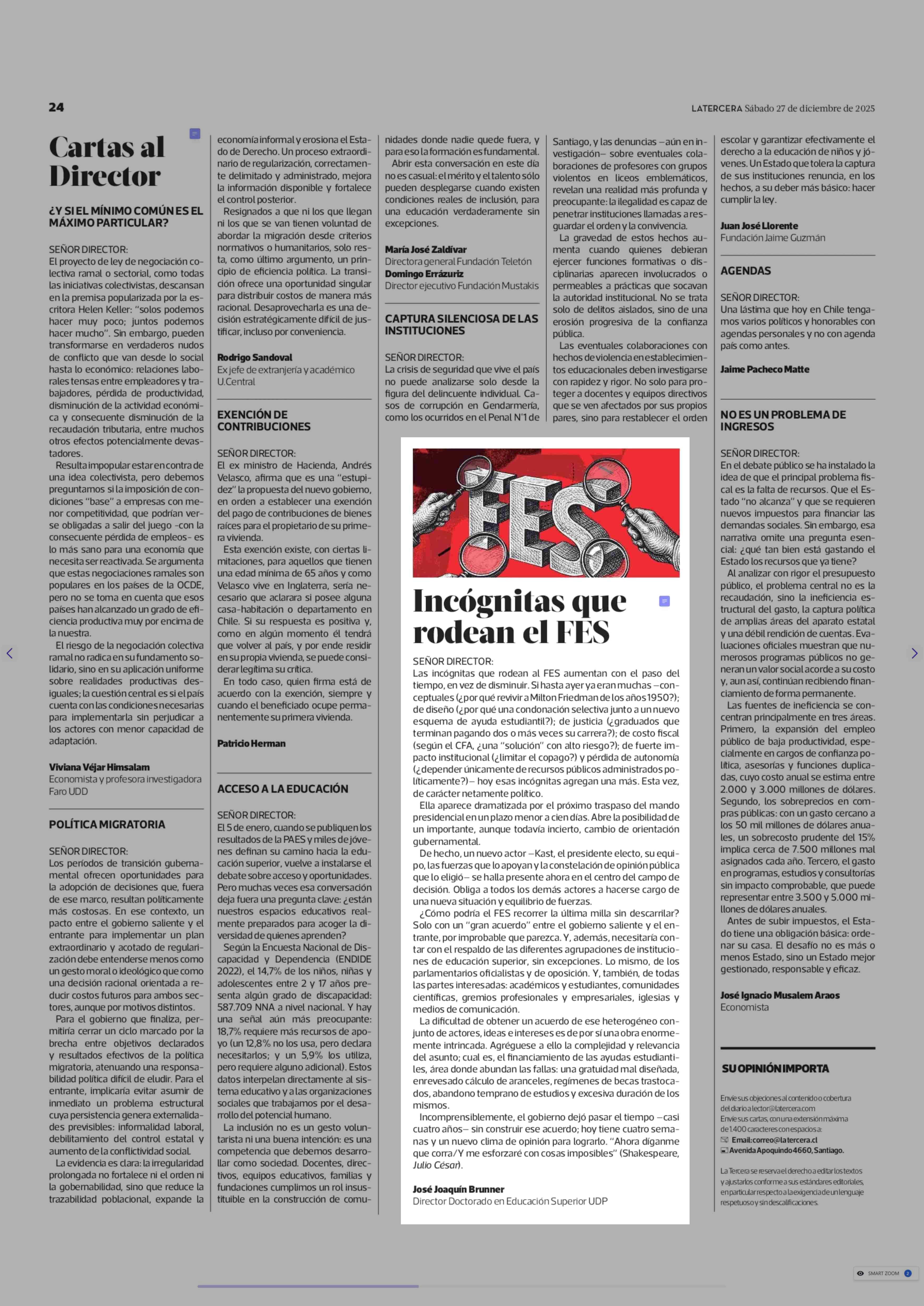 Cartas: Incógnitas que rodean el FES 27-12-2025 La Tercera |