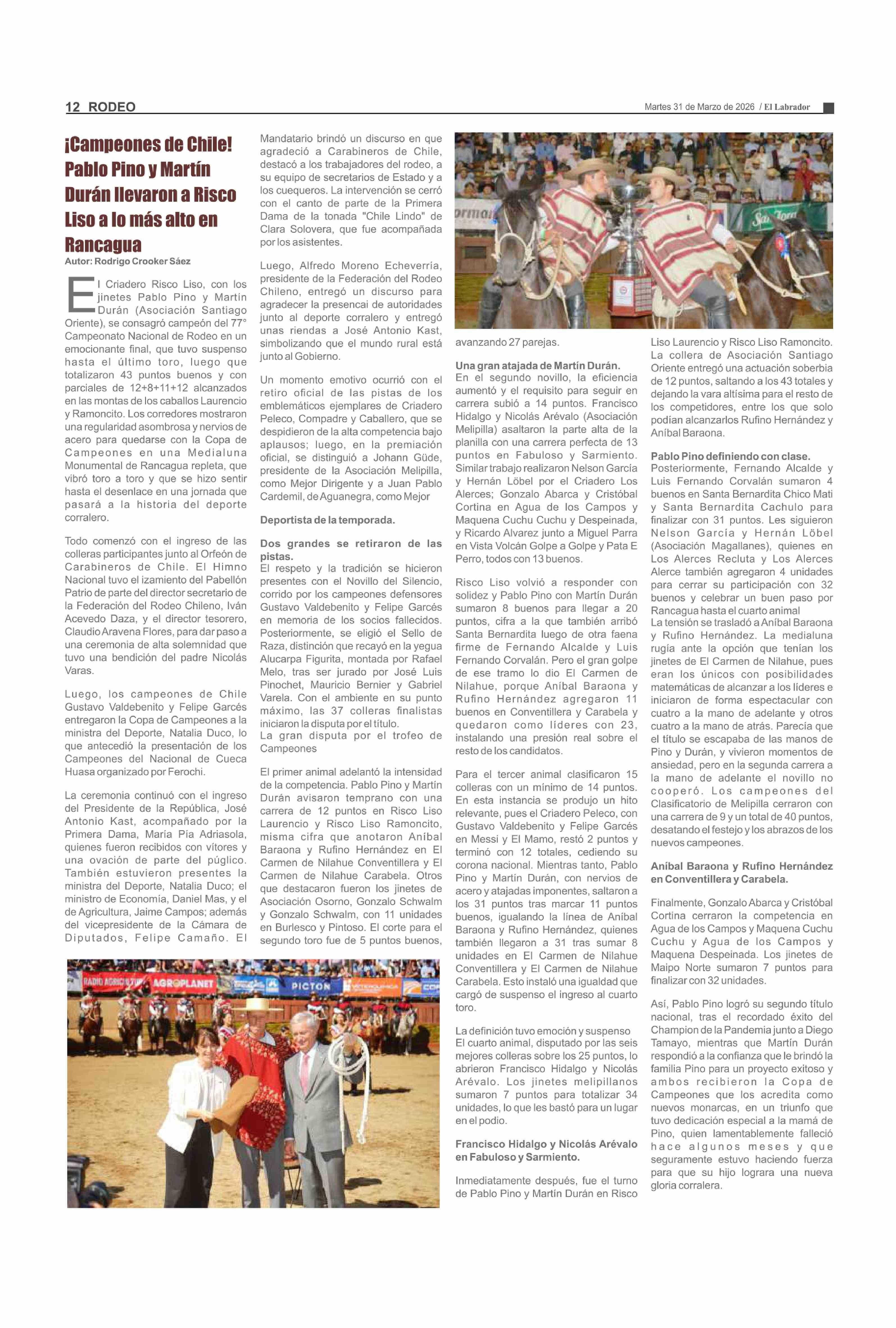 ¡Campeones de Chile! Pablo Pino y Martín Durán llevaron a Risco Liso a lo más alto en 31-03-2026 El Labrador |
