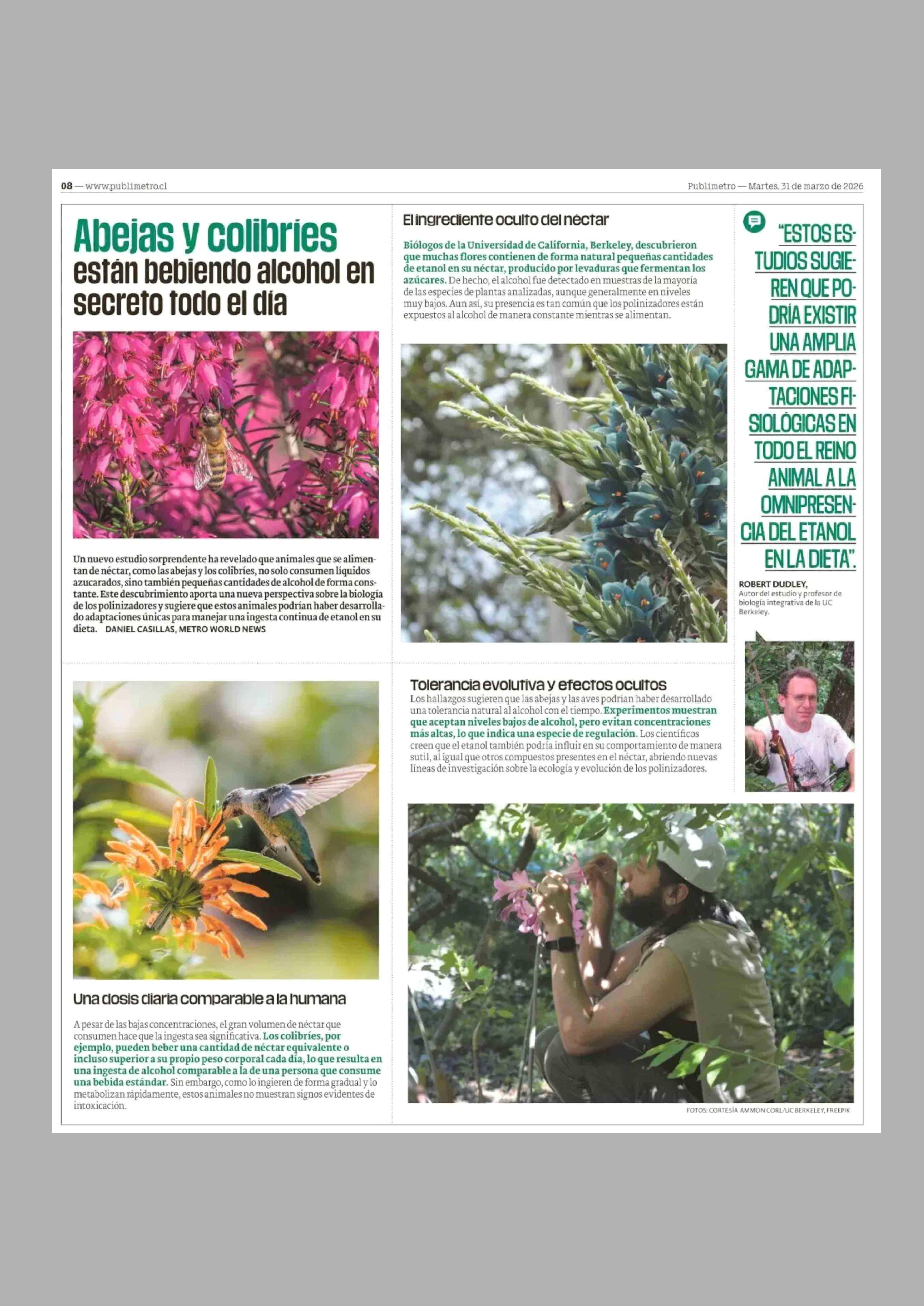 Abejas y colibries están bebiendo alcohol en secreto todo el dia 31-03-2026 Publimetro |