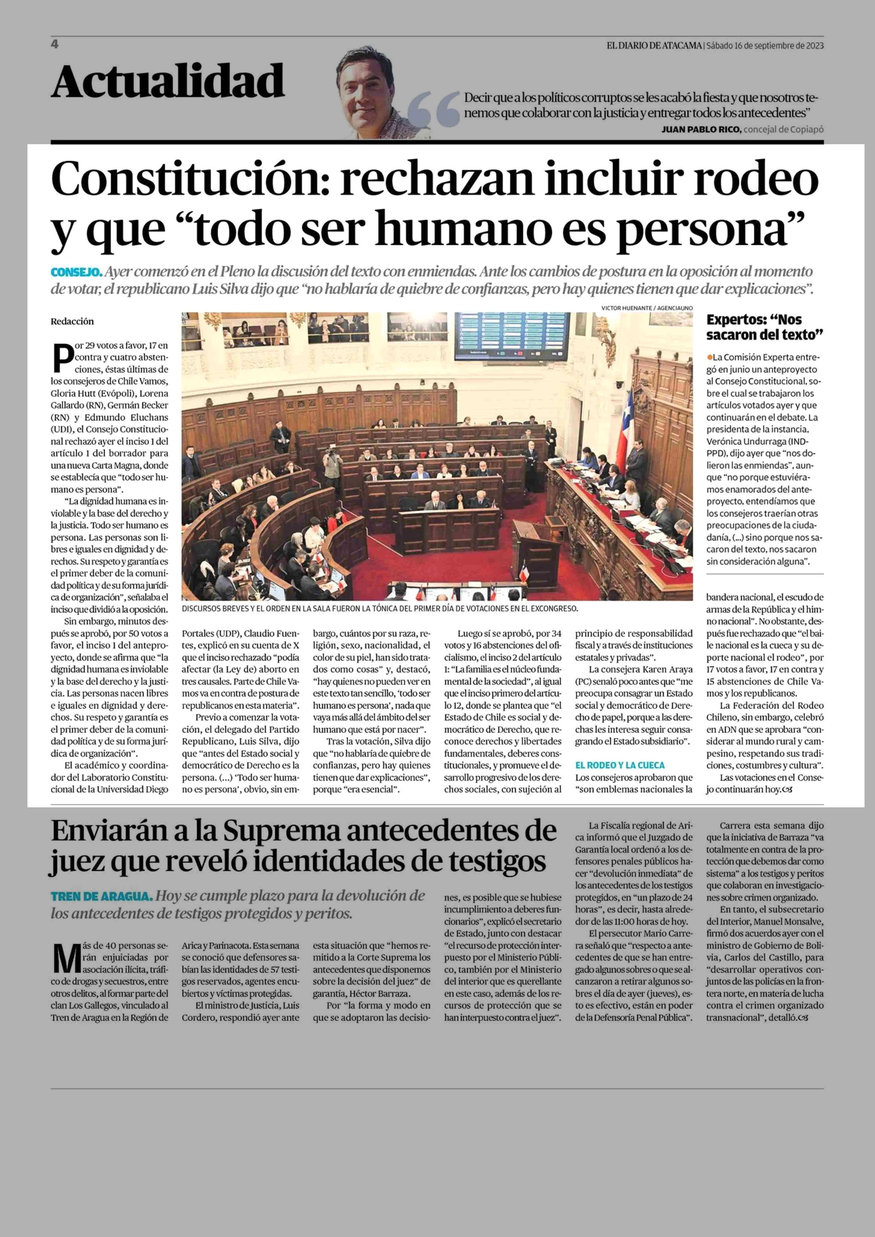 Constitución: rechazan incluir rodeo y que “todo ser humano es persona” 16-09-2023 El Diario de Atacama |