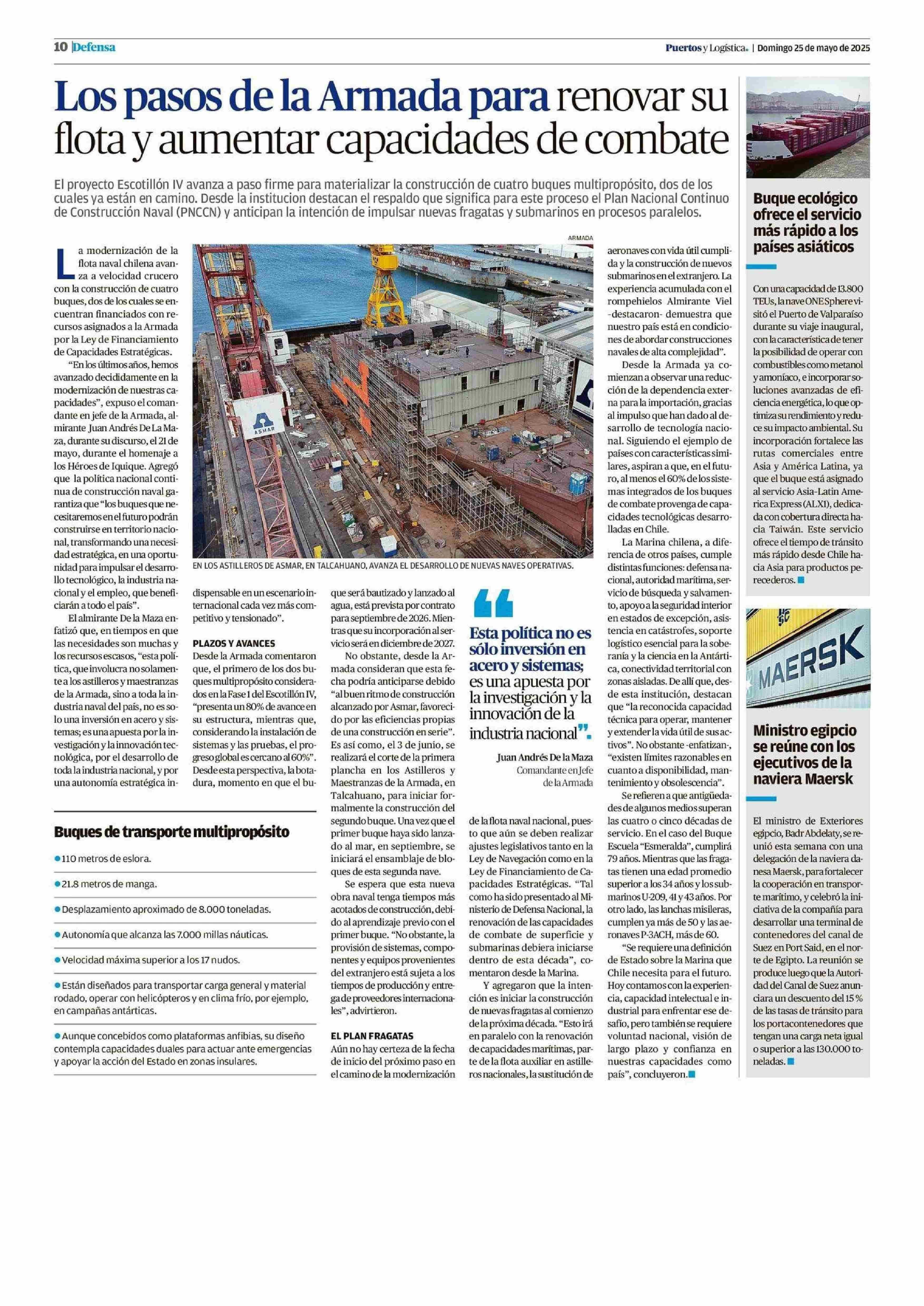 Los pasos de la Armada para renovar su flota aumentar capacidades de combate 25-05-2025 El Mercurio de Valparaíso |
