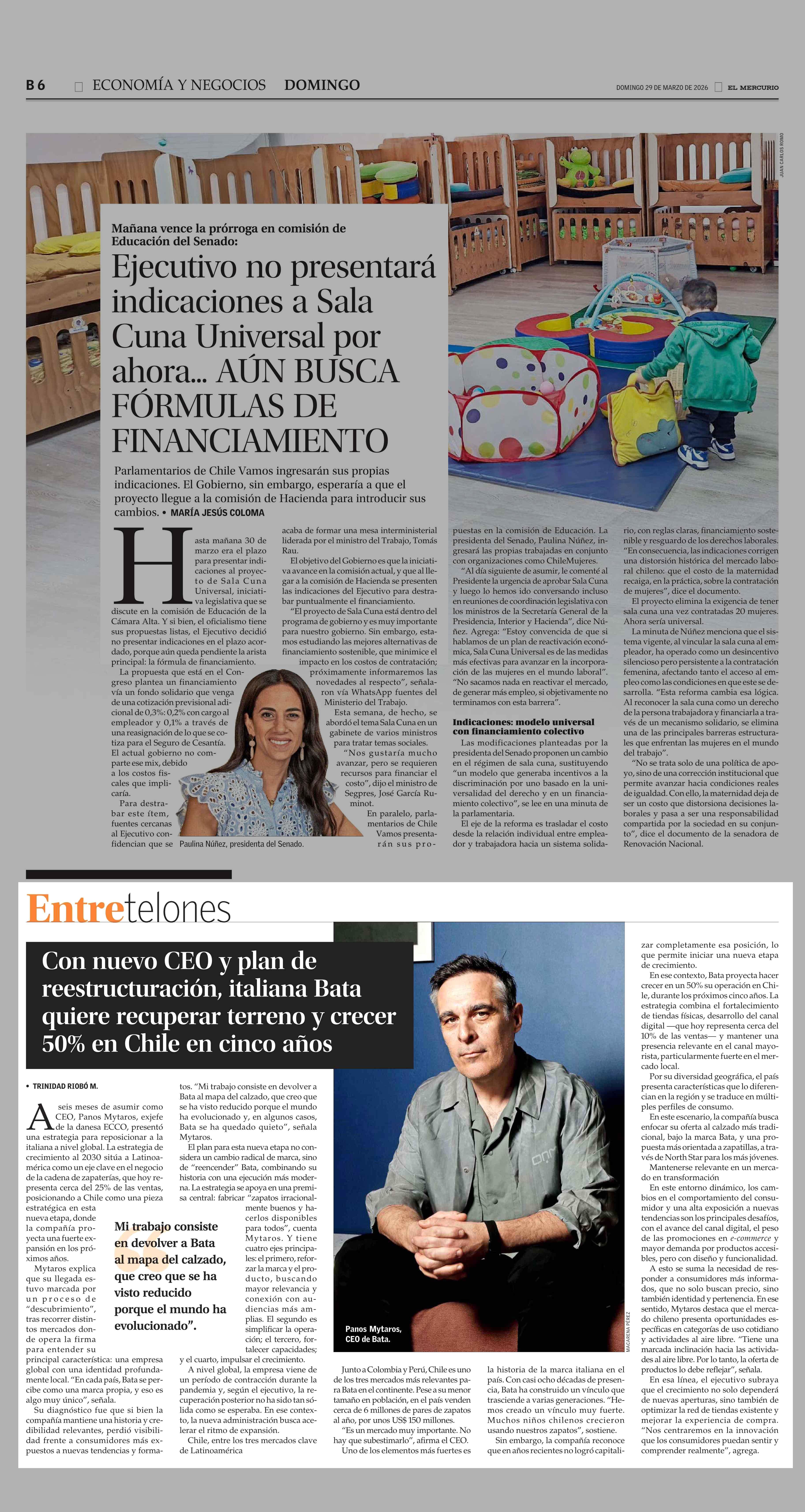 Con nuevo CEO y plan de reestructuración, italiana Bata quiere recuperar terreno y crecer 50% en Chile en cinco años 29-03-2026 El Mercurio |