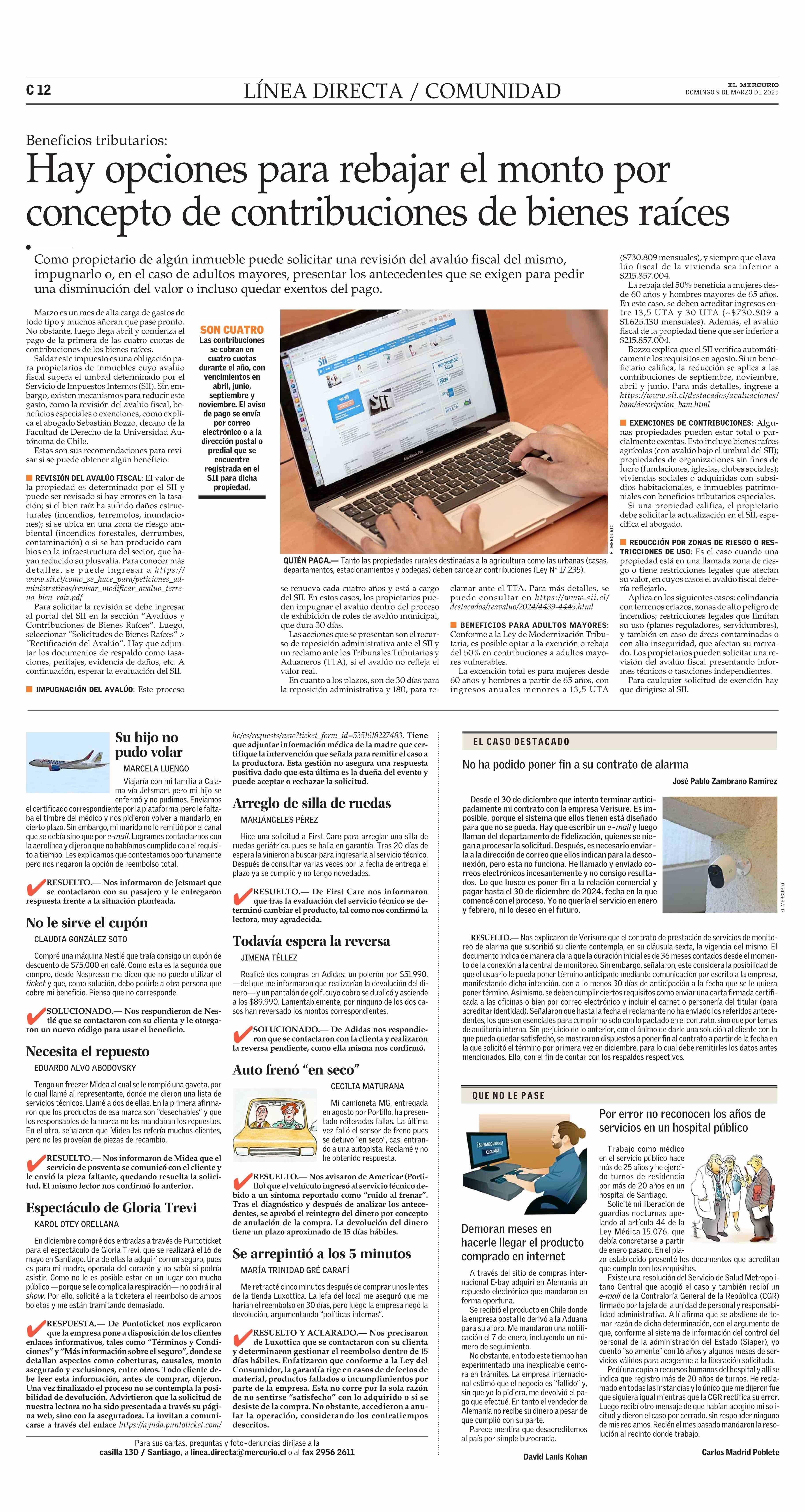 Hay opciones para rebajar el monto por concepto de contribuciones de bienes raíces 09-03-2025 El Mercurio |