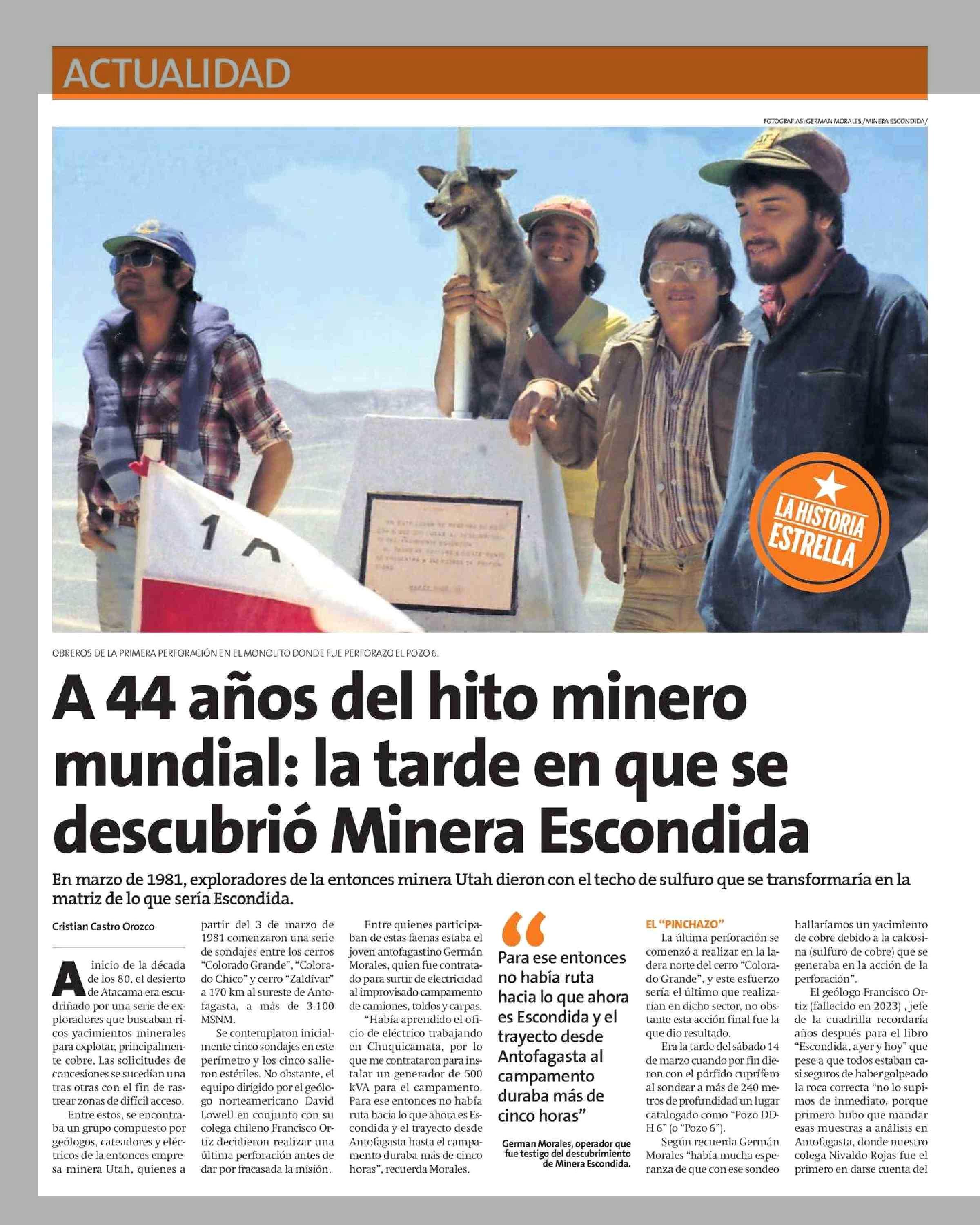| Título: | A 44 años del hito minero mundial: la tarde en que se descubrió Minera Escondida |