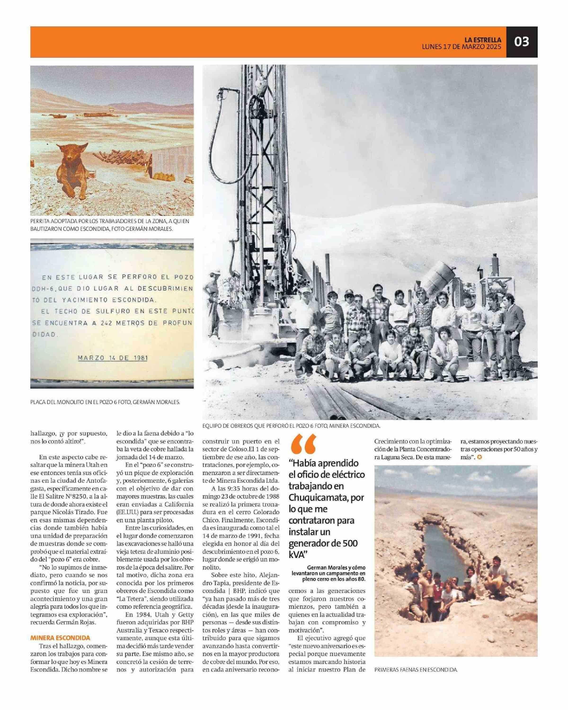 A 44 años del hito minero mundial: la tarde en que se descubrió Minera Escondida 17-03-2025 La Estrella Del Loa |