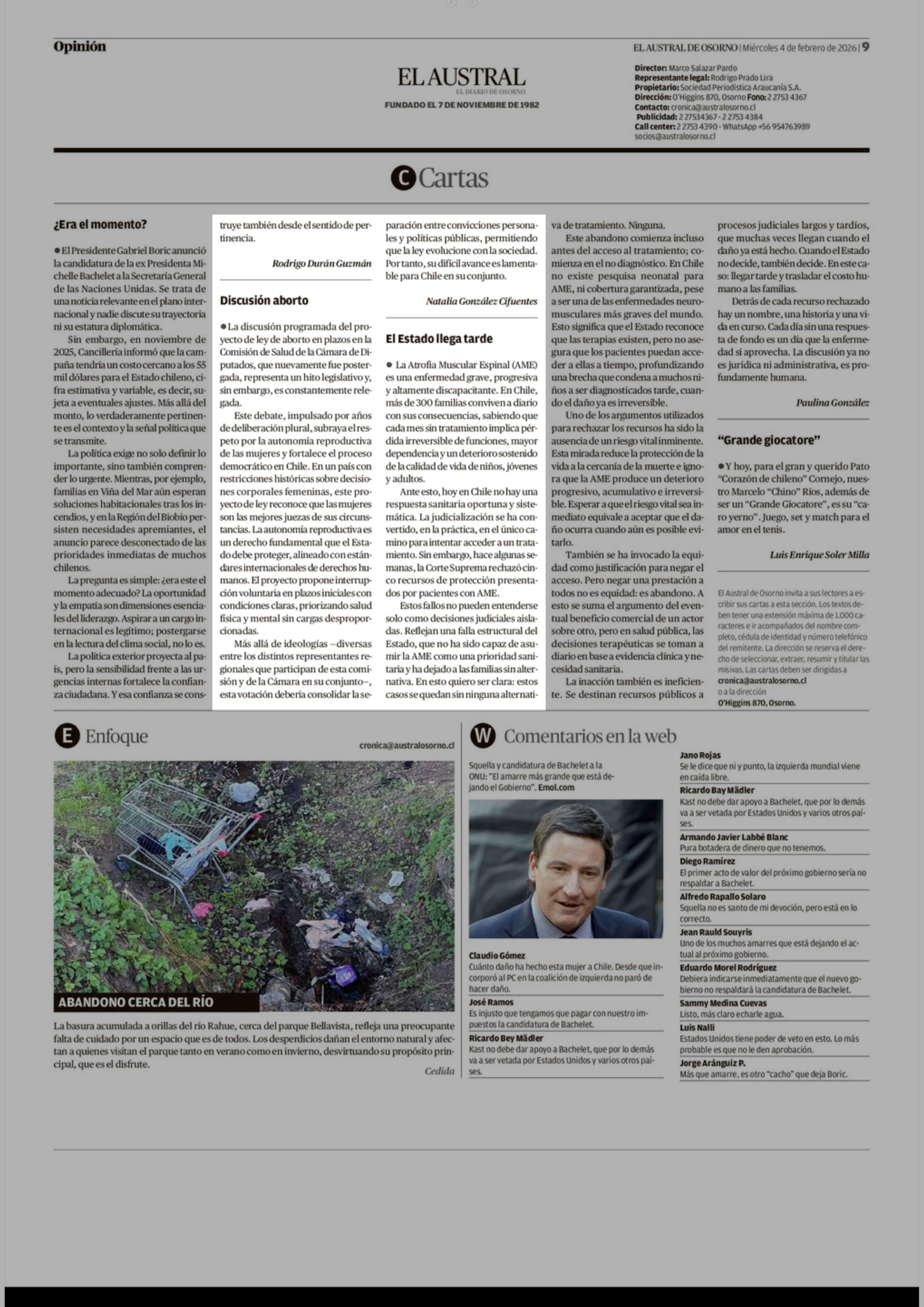 Cartas: Discusión aborto 04-02-2026 El Austral de Osorno |