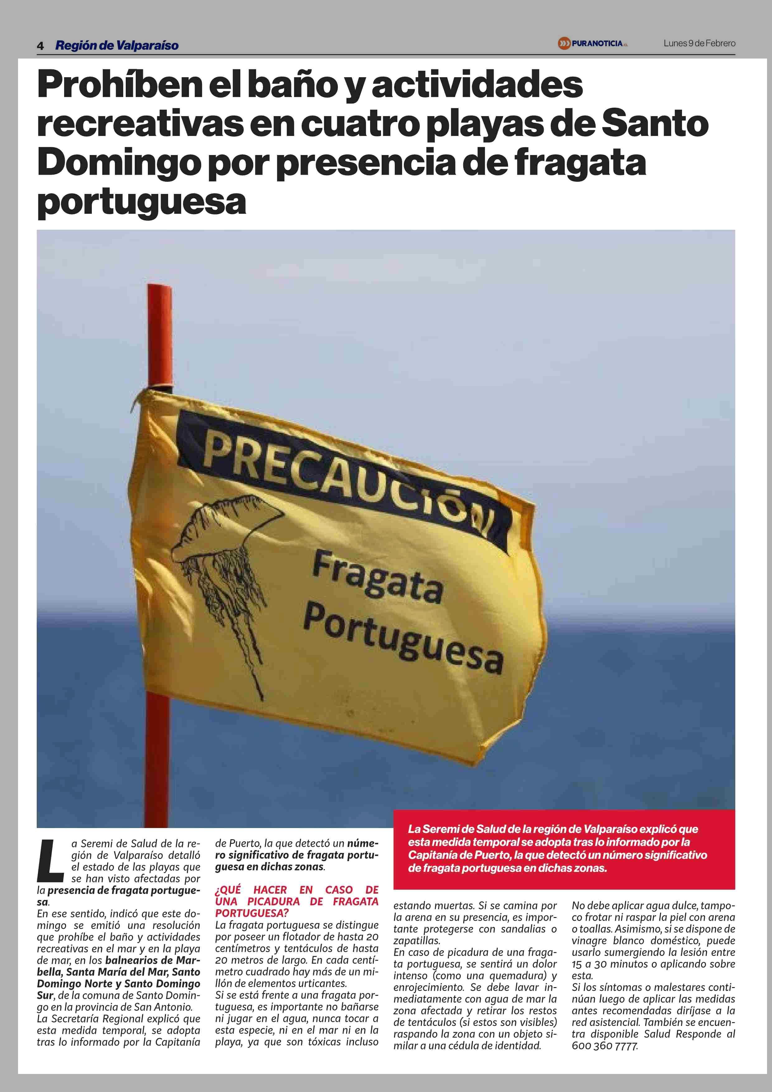 Título: Prohíben el baño y actividades recreativas en cuatro playas de Santo Domingo por presencia de fragata portuguesa