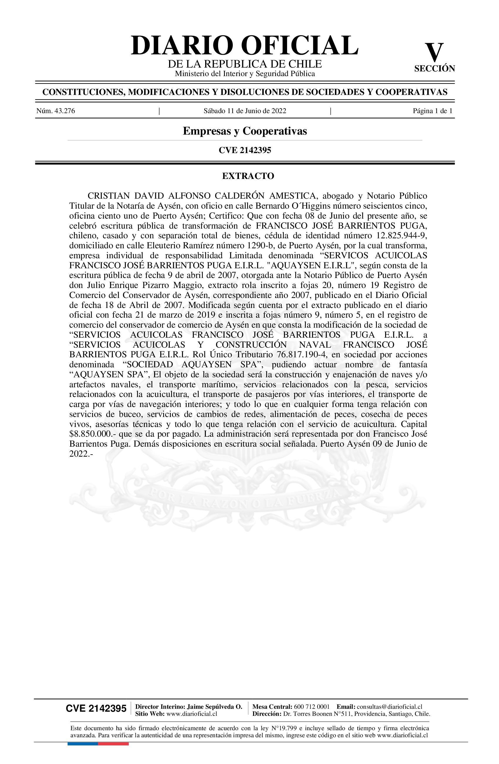 Extracto 11-06-2022 Diario Oficial Edición Electrónica |