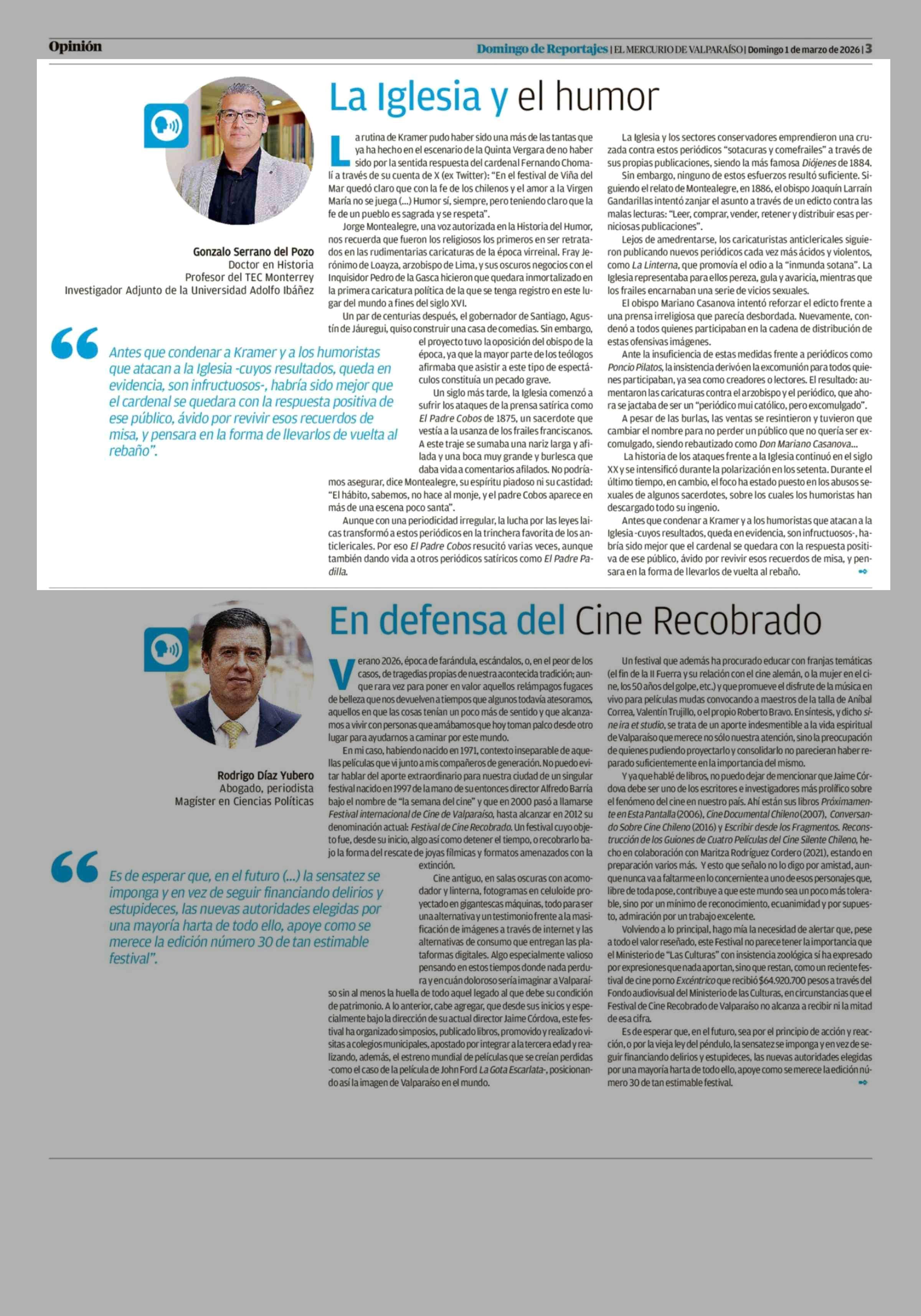 Columnas de Opinión: La Iglesia y el humor 01-03-2026 El Mercurio de Valparaíso |