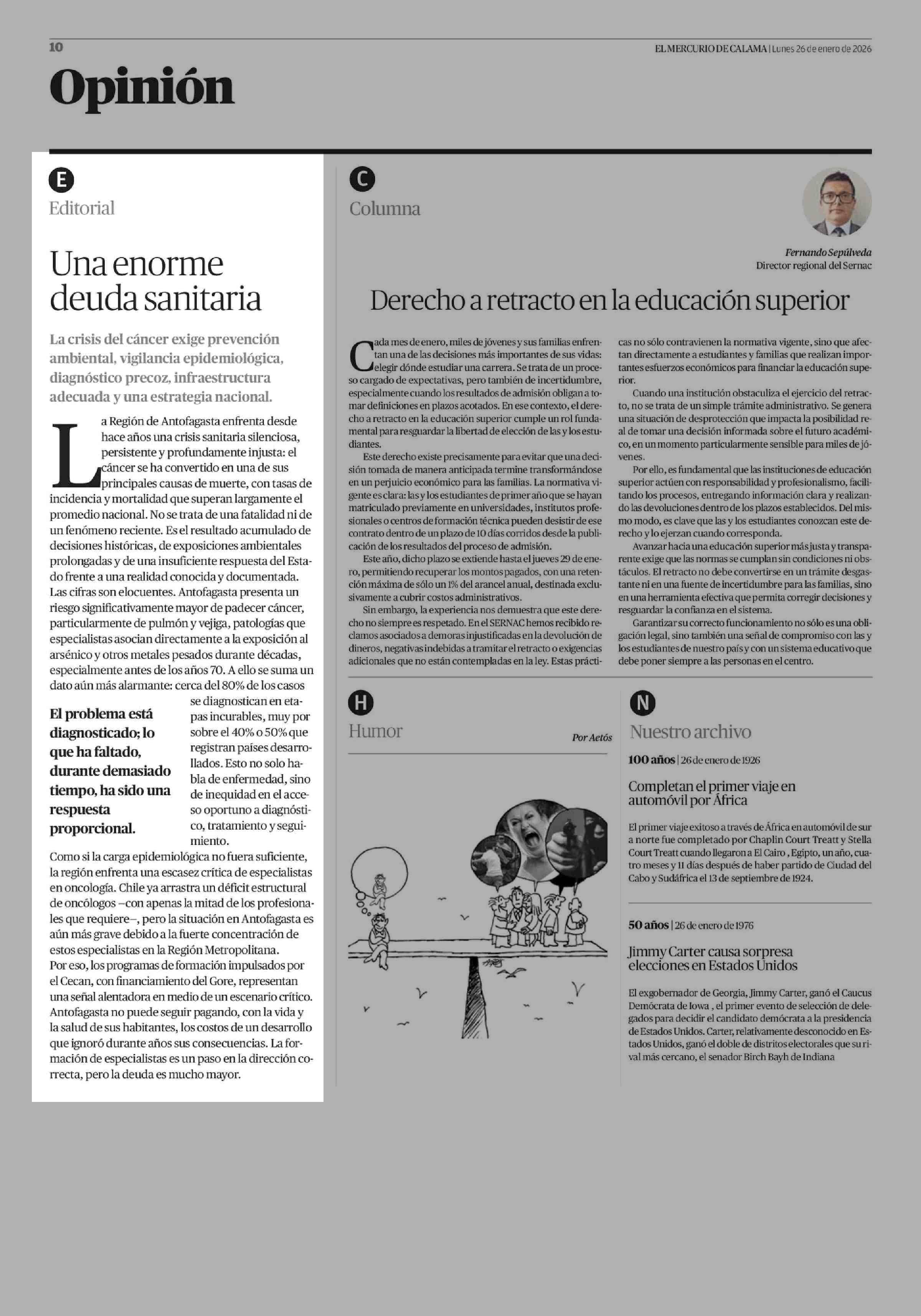 Fecha: 26-01-2026 Sector: Editorial Región: Región de Antofagasta