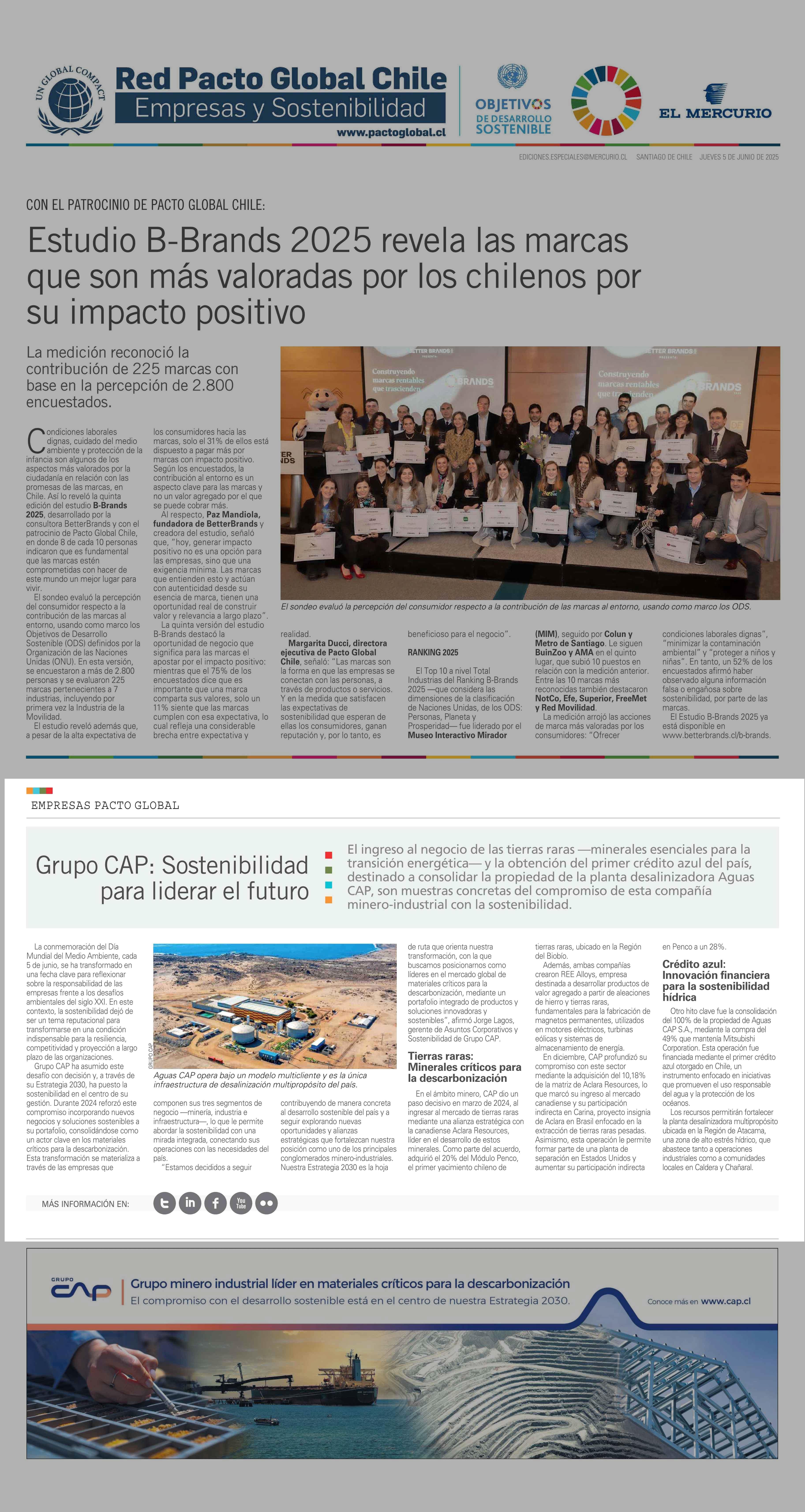 Grupo CAP: Sostenibilidad para liderar el futuro 05-06-2025 El Mercurio |