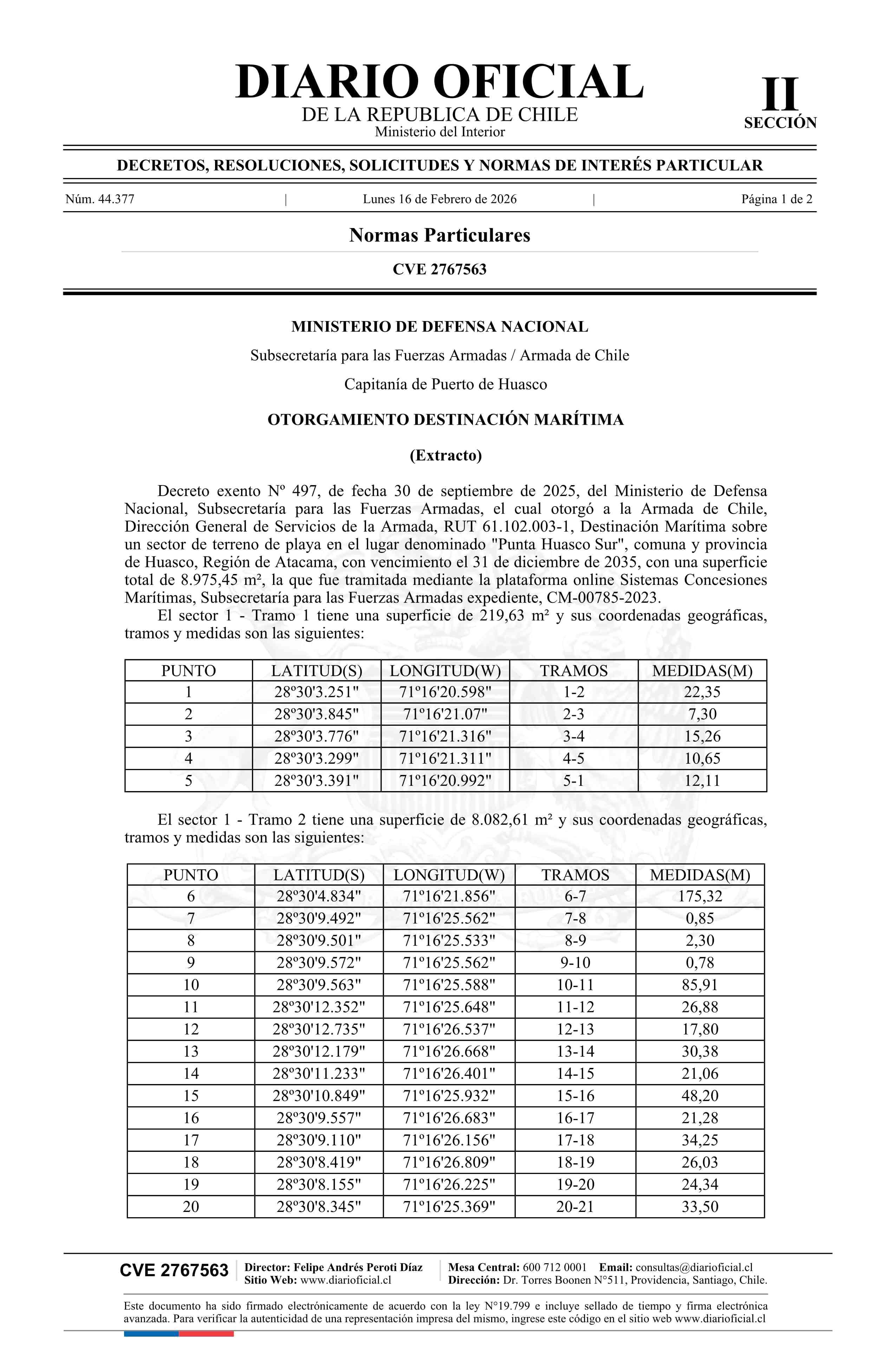 | Fuente: | Diario Oficial Edición Electrónica (Diario Oficial de Chile - 2 Normas Particulares) | Página(s): | 15-16 |