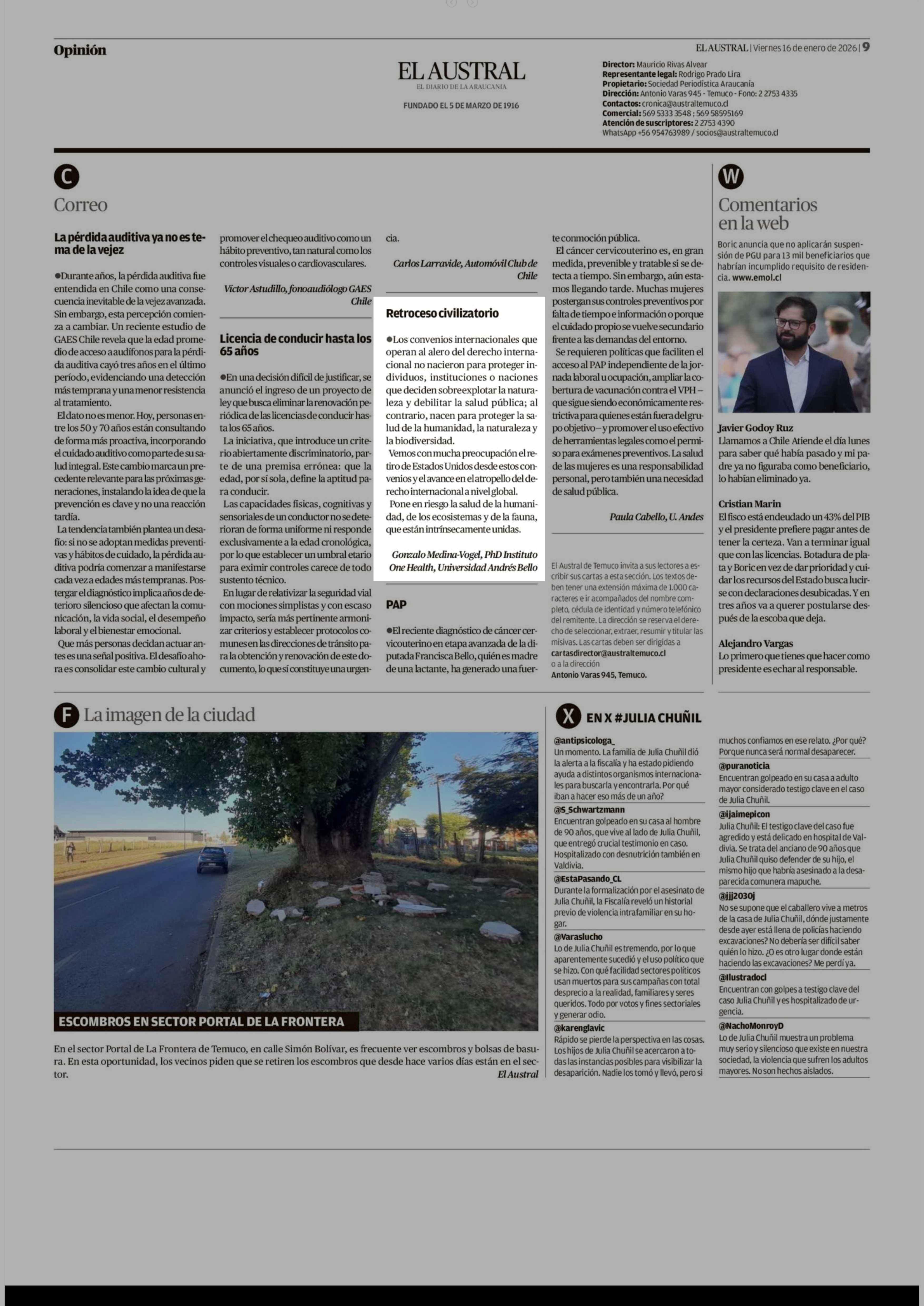 Cartas: Retroceso civilizatorio 16-01-2026 El Austral de la Araucanía |