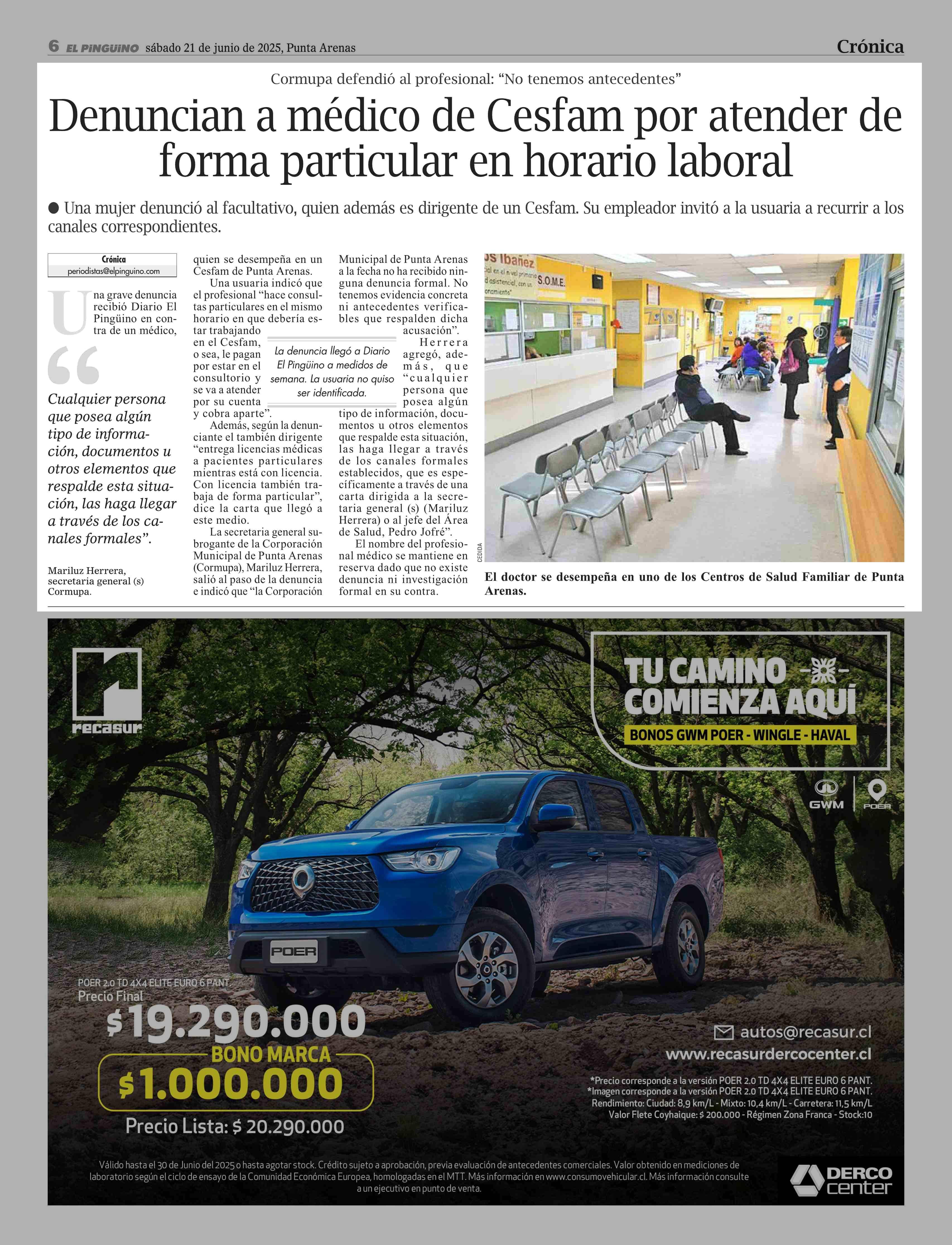 Denuncian a médico de Cesfam por atender de forma particular en horario laboral 21-06-2025 El Pingüino |