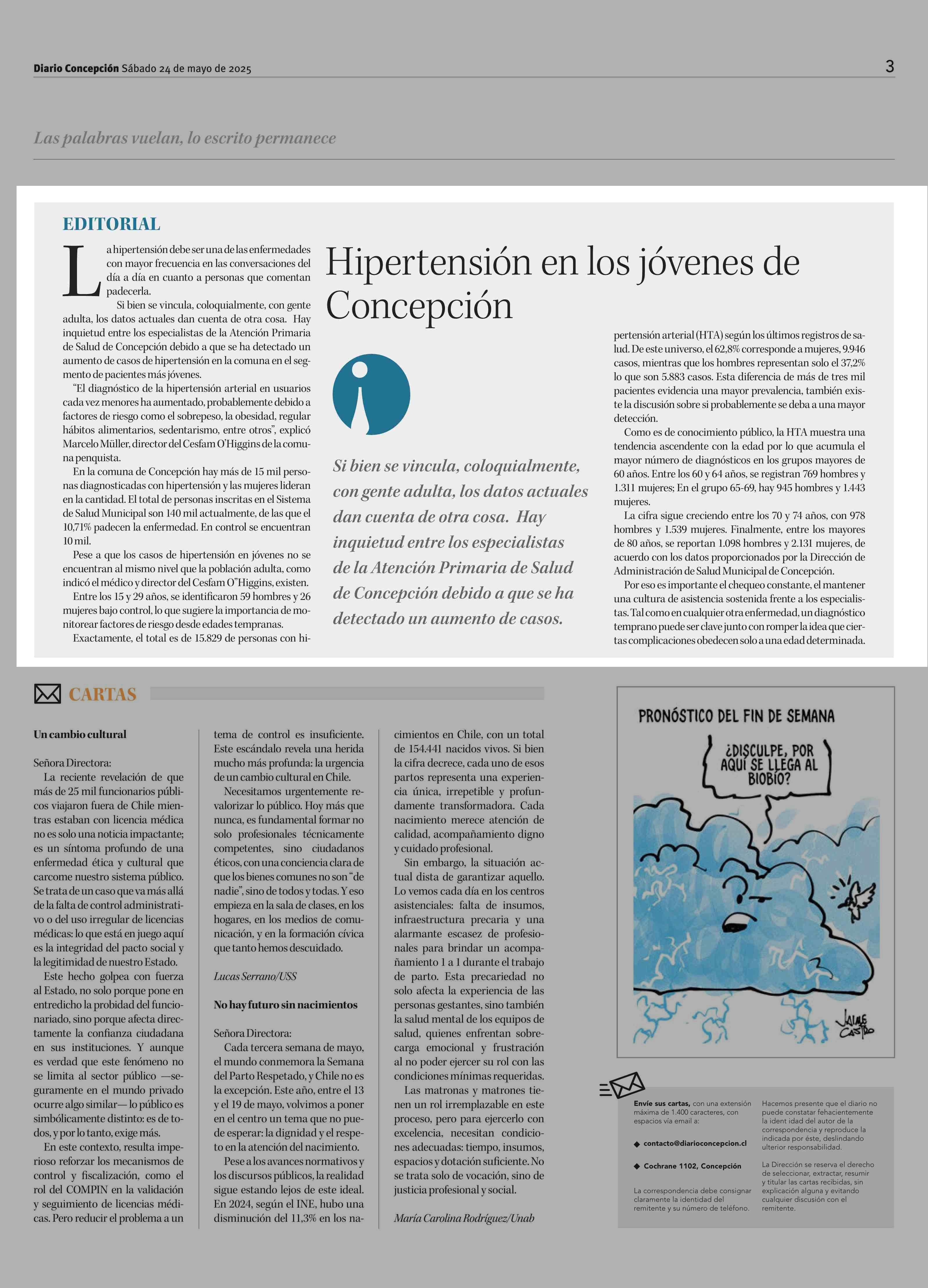 EDITORIAL: Hipertensión en los jóvenes de Concepción 24-05-2025 Diario Concepción |