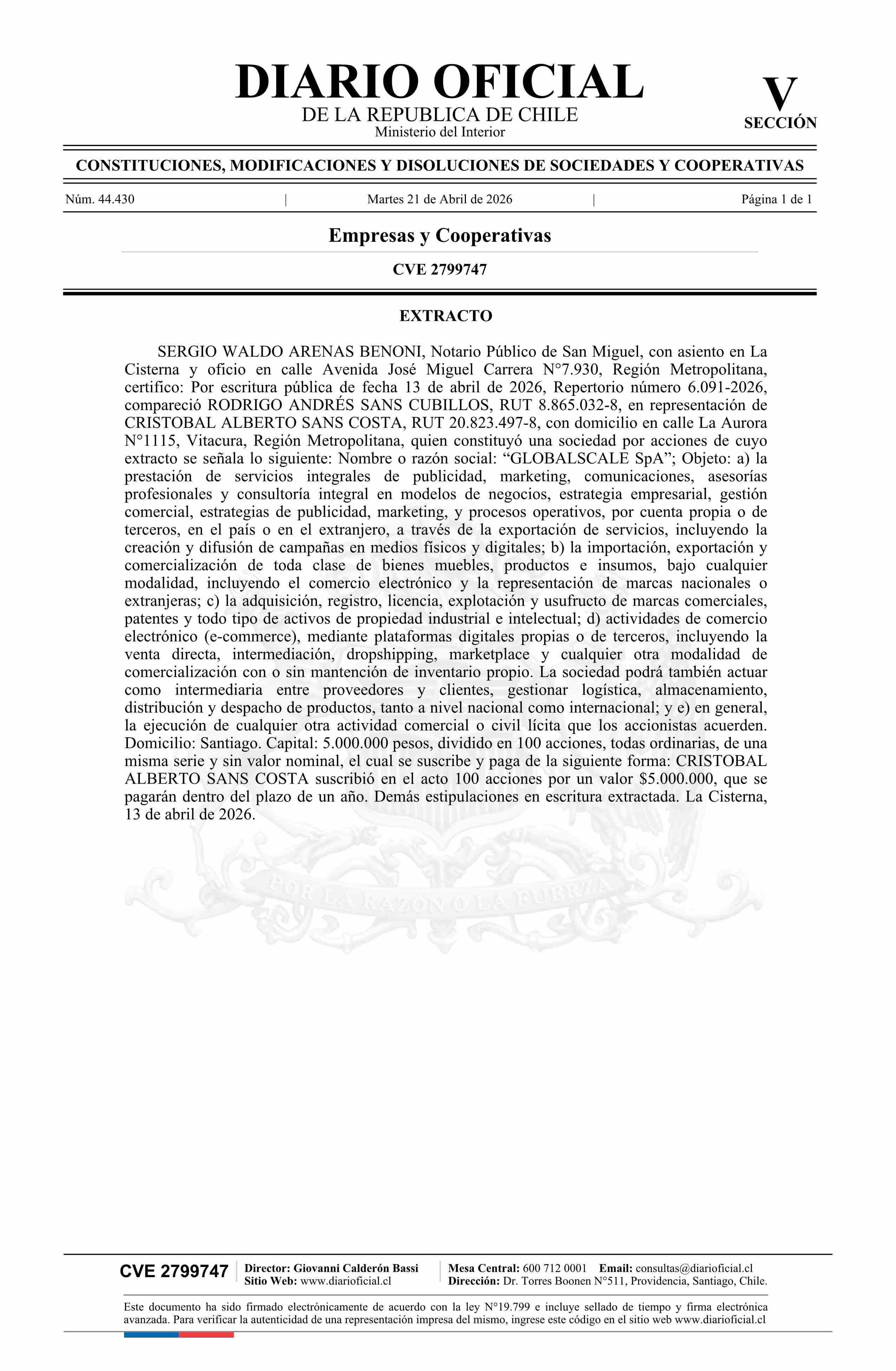 Título: GLOBALSCALE SpA