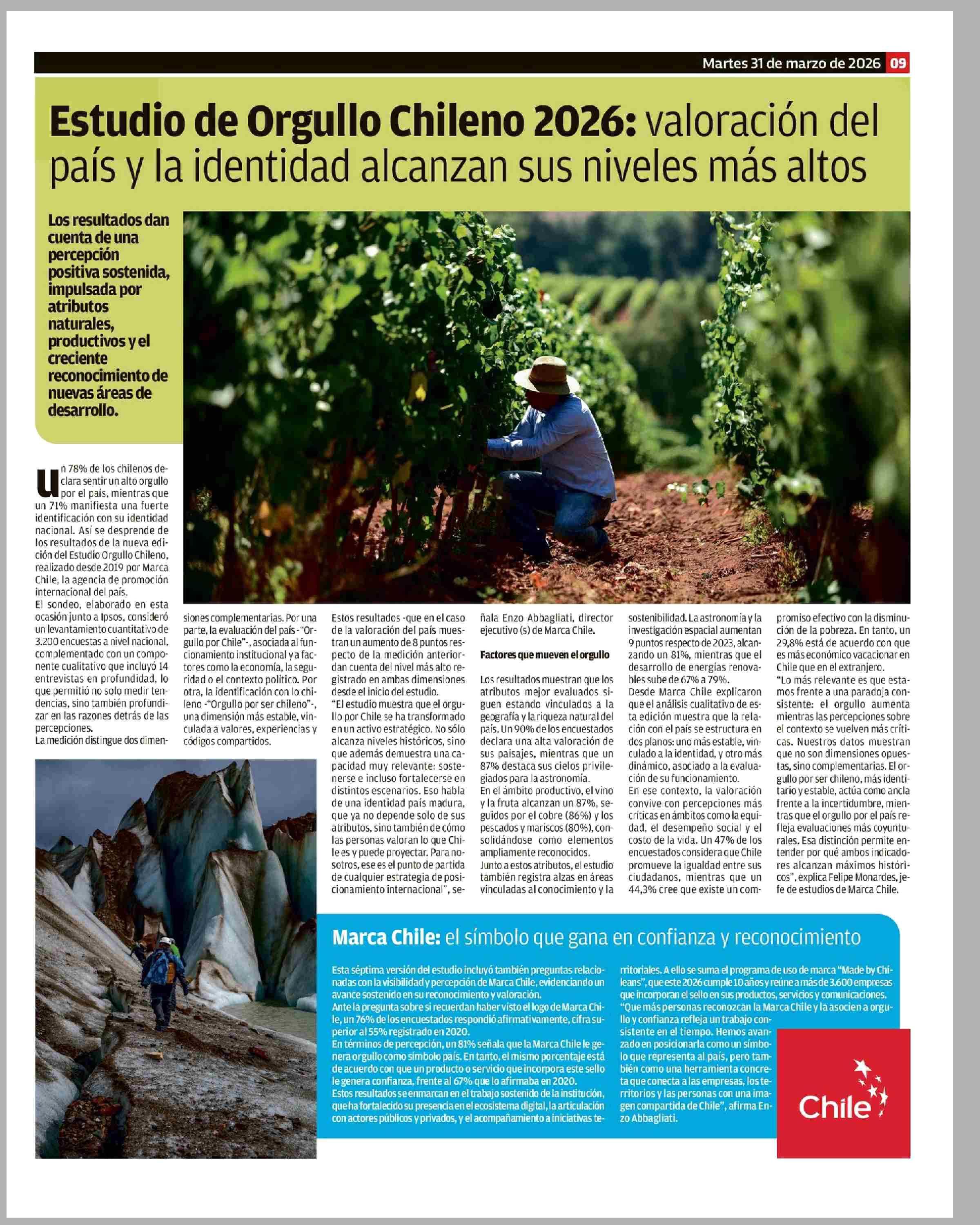 | Título: | Estudio de Orgullo Chileno 2026: valoración del país y la identidad alcanzan sus niveles más altos |