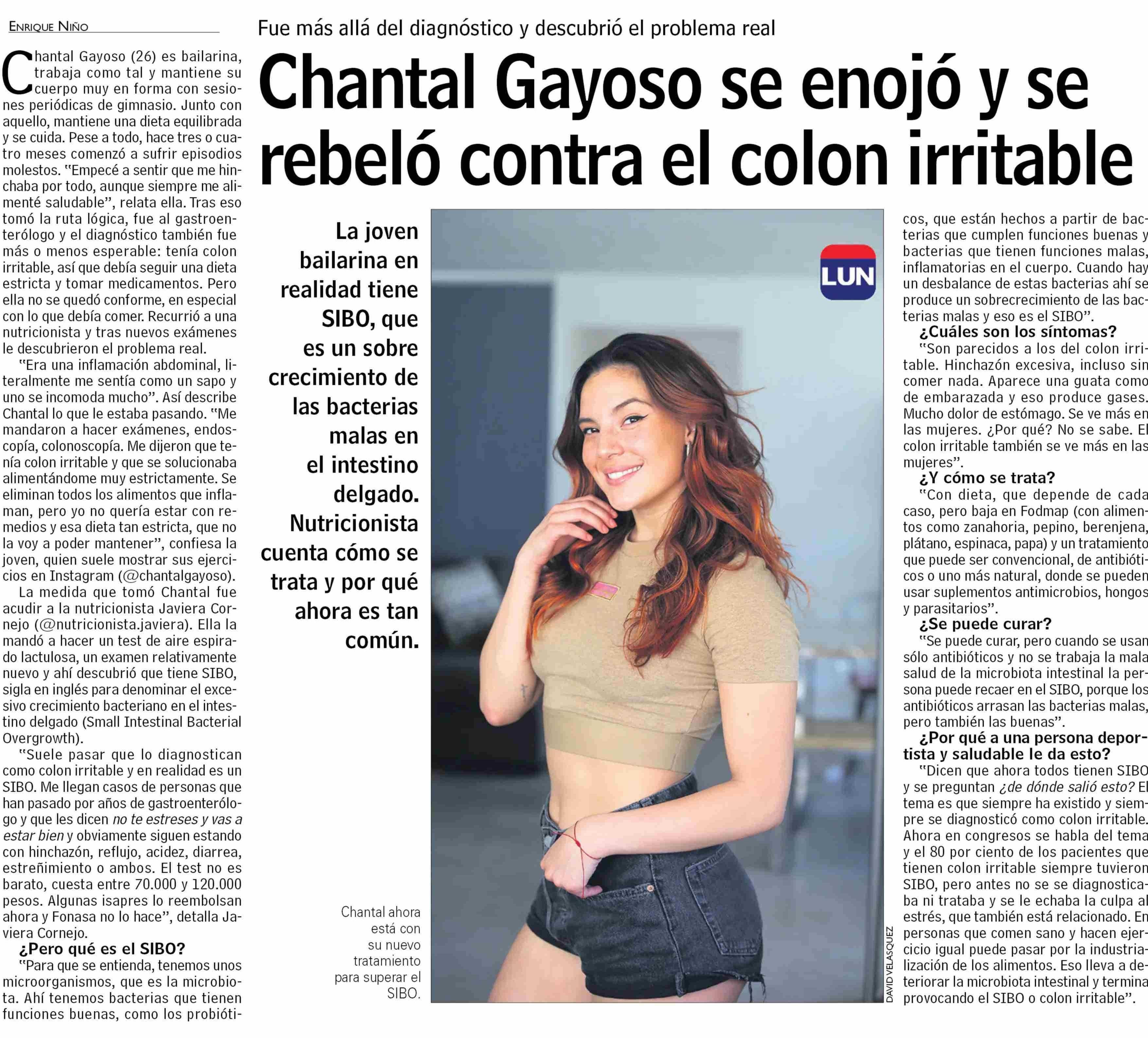 | Título: | Chantal Gayoso se enojó y se rebeló contra el colon irritable |