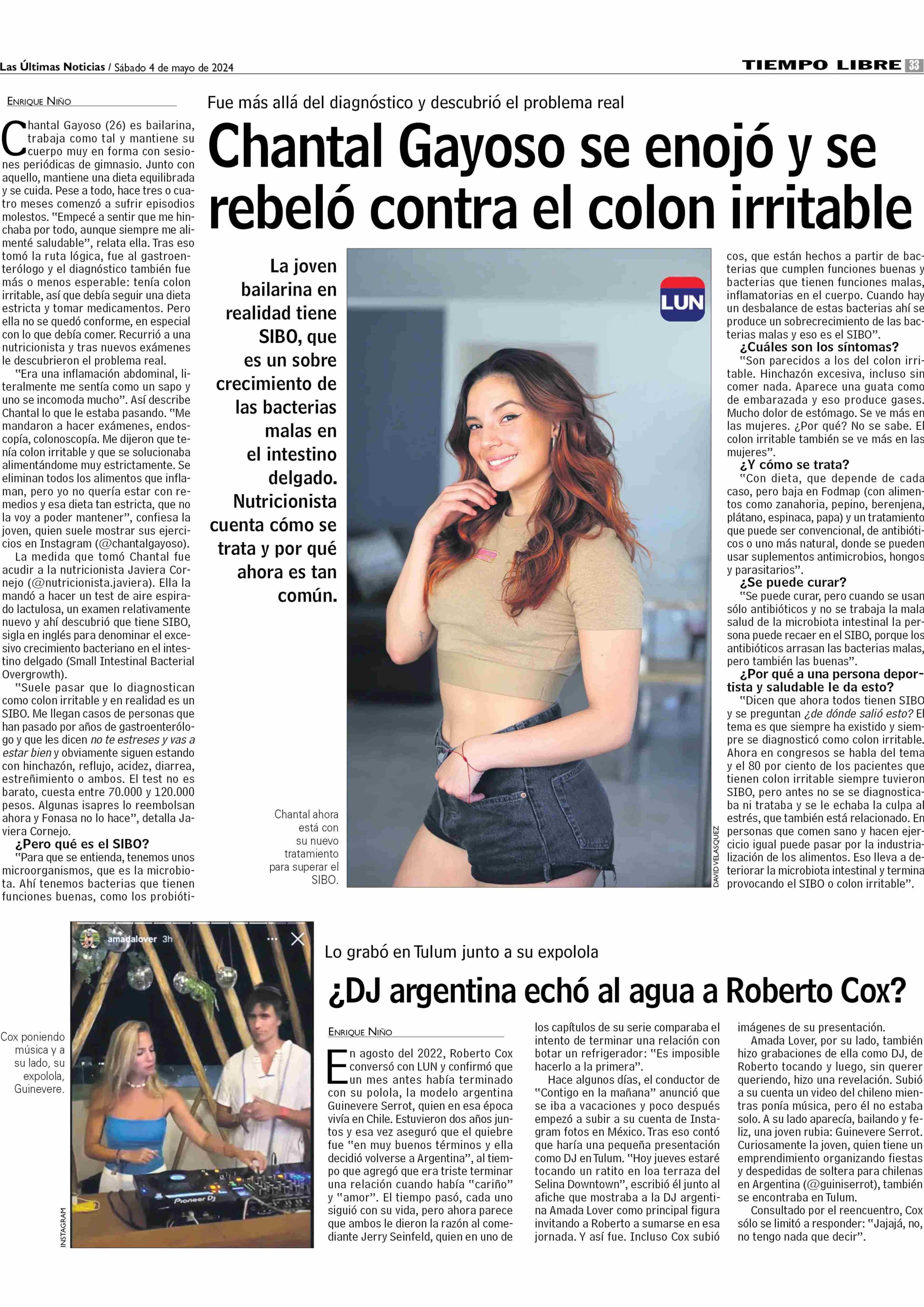 Chantal Gayoso se enojó y se rebeló contra el colon irritable 04-05-2024 Las Últimas Noticias |