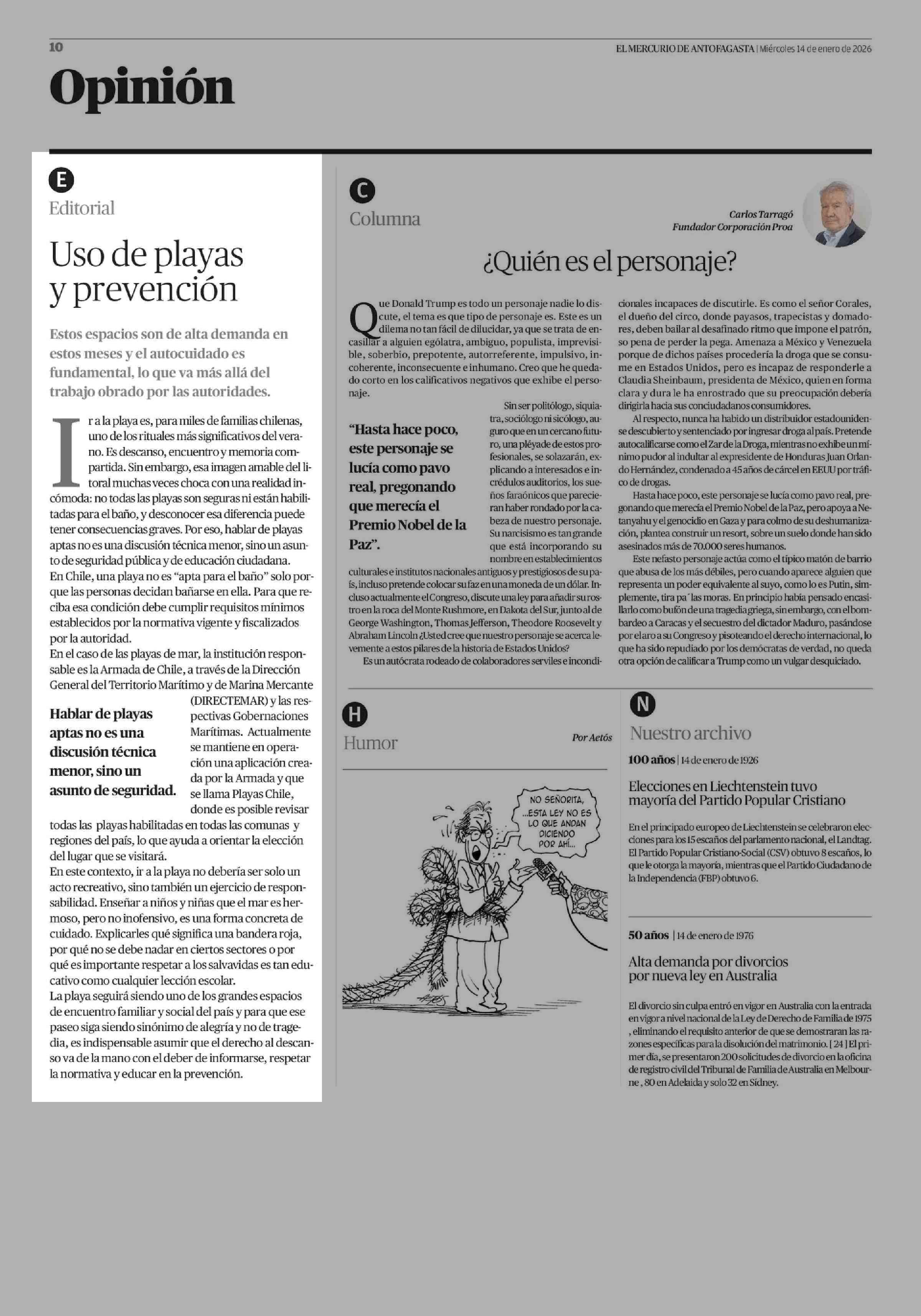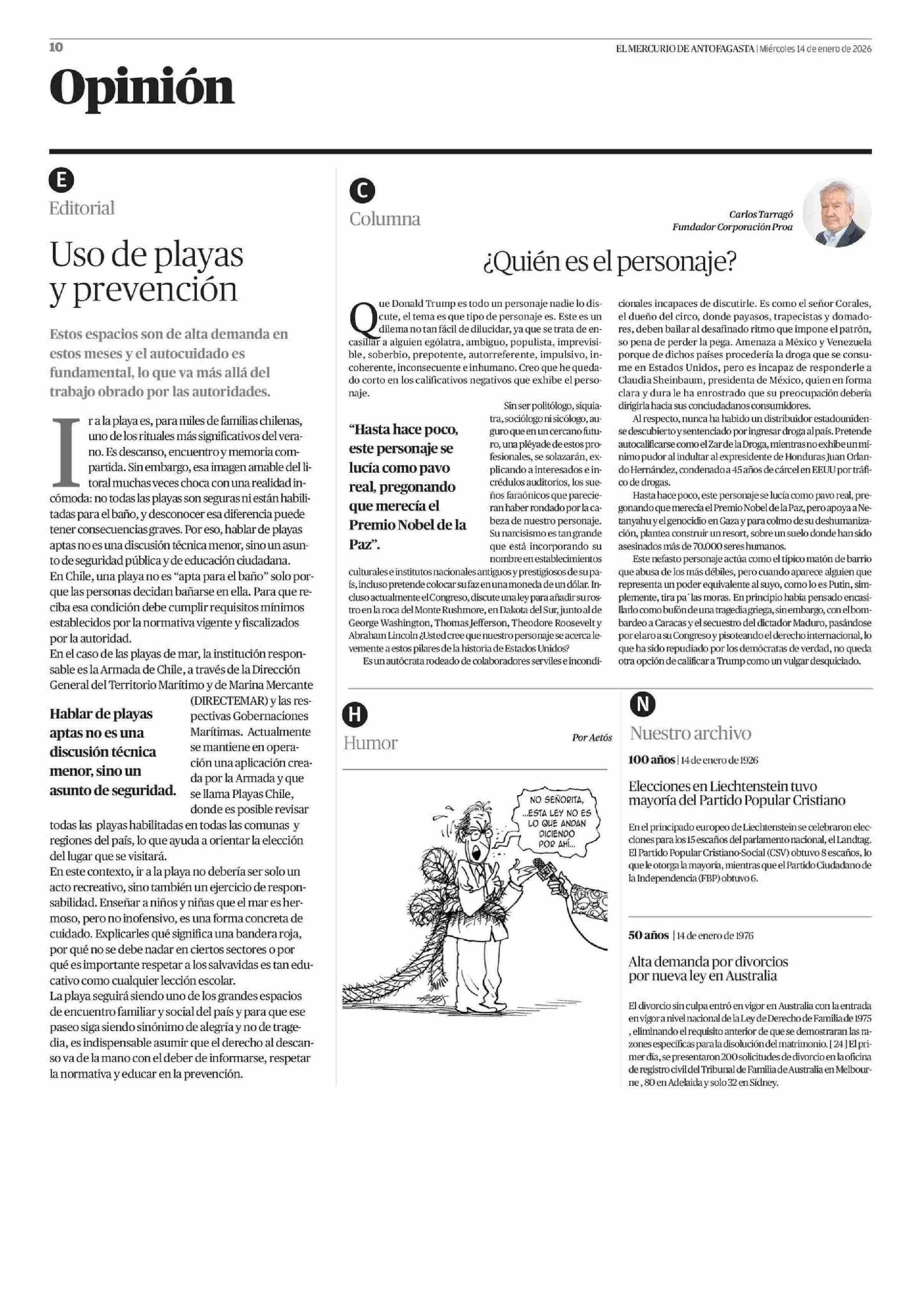 Editorial: Uso de playas y prevención 14-01-2026 El Mercurio de Antofagasta |