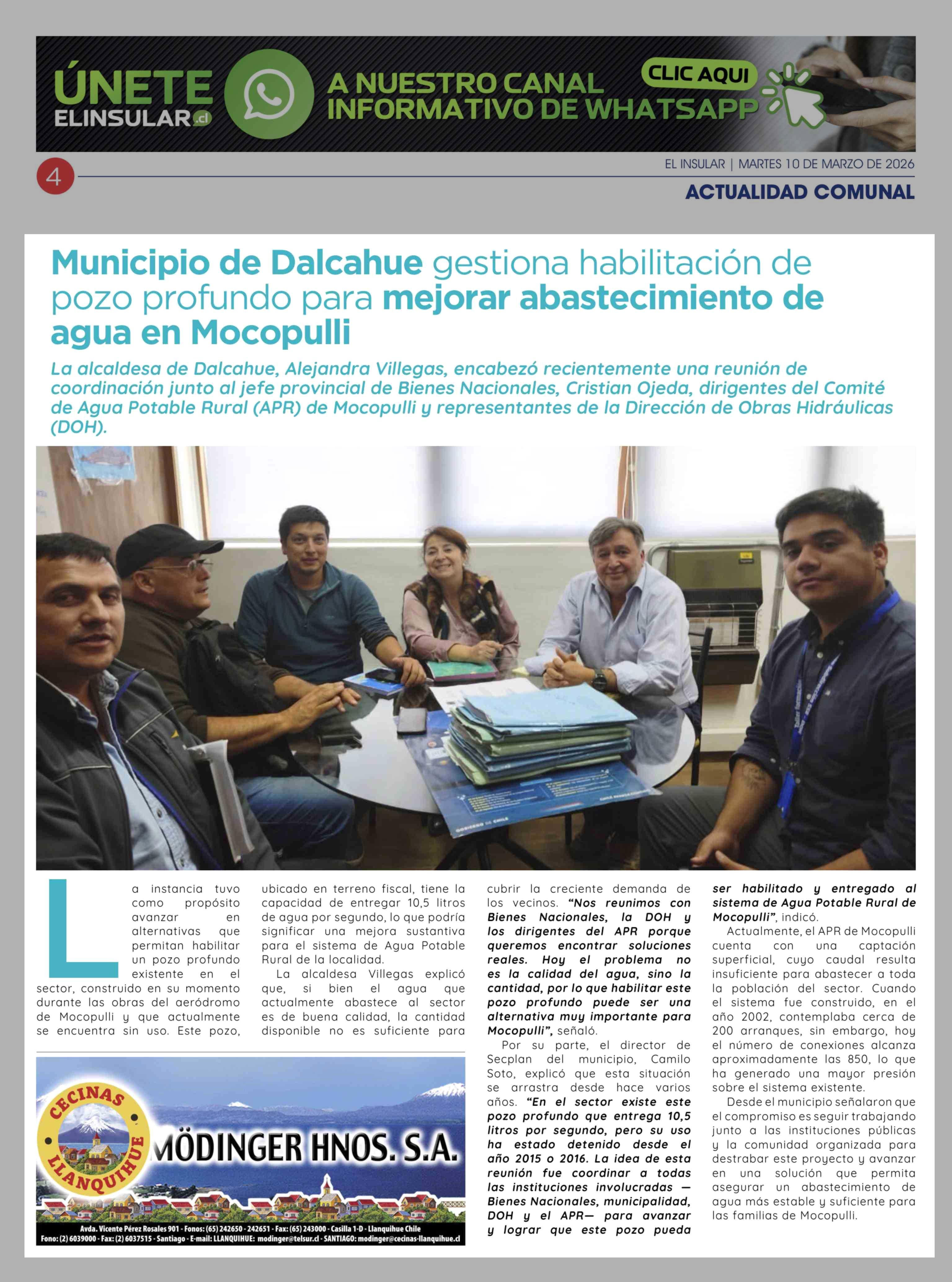 Título: Municipio de Dalcahue gestiona habilitación de pozo profundo para mejorar abastecimiento de agua en Mocopulli