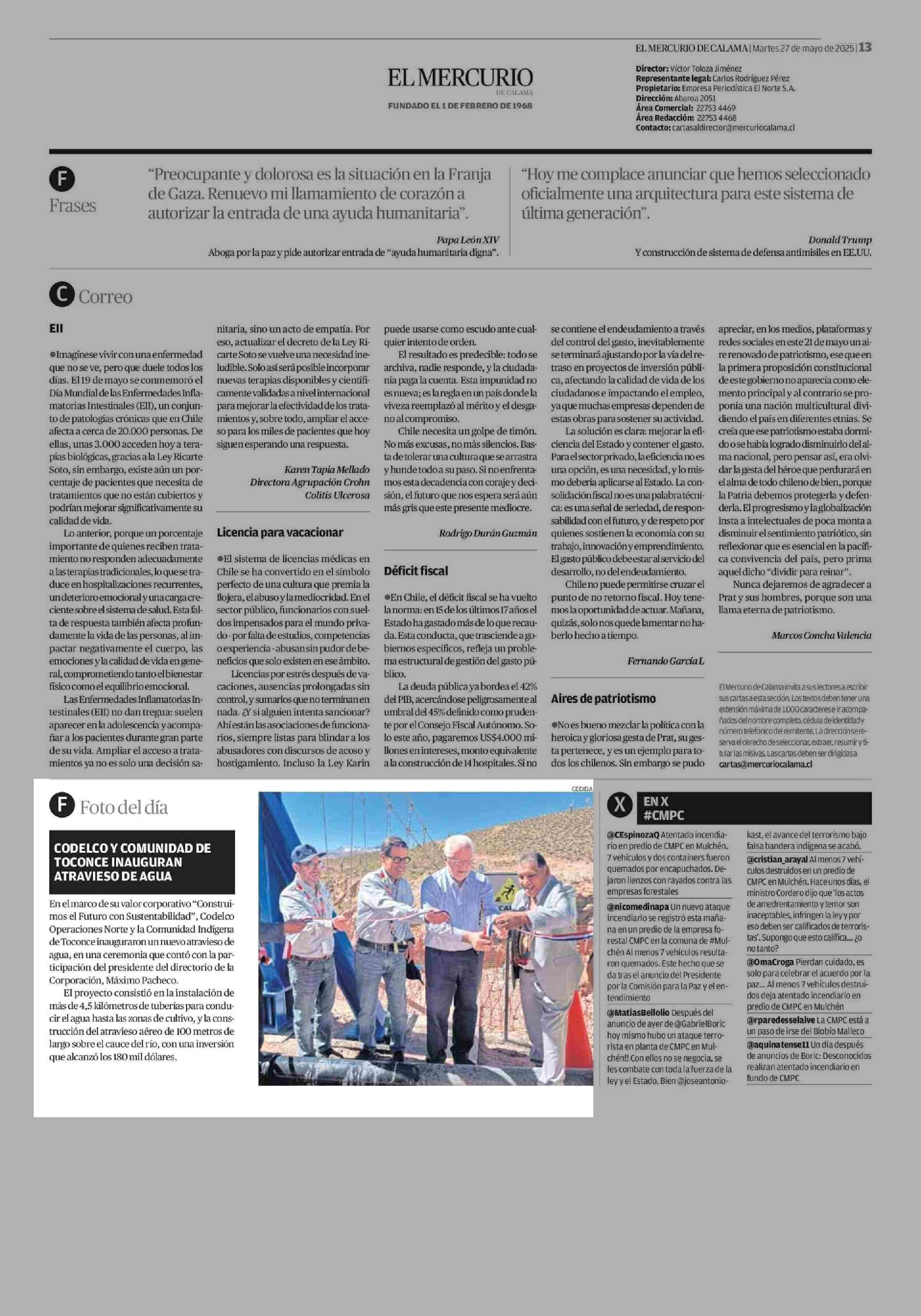 Fuente: El Mercurio de Calama (El Mercurio de Calama) Página(s): 13
