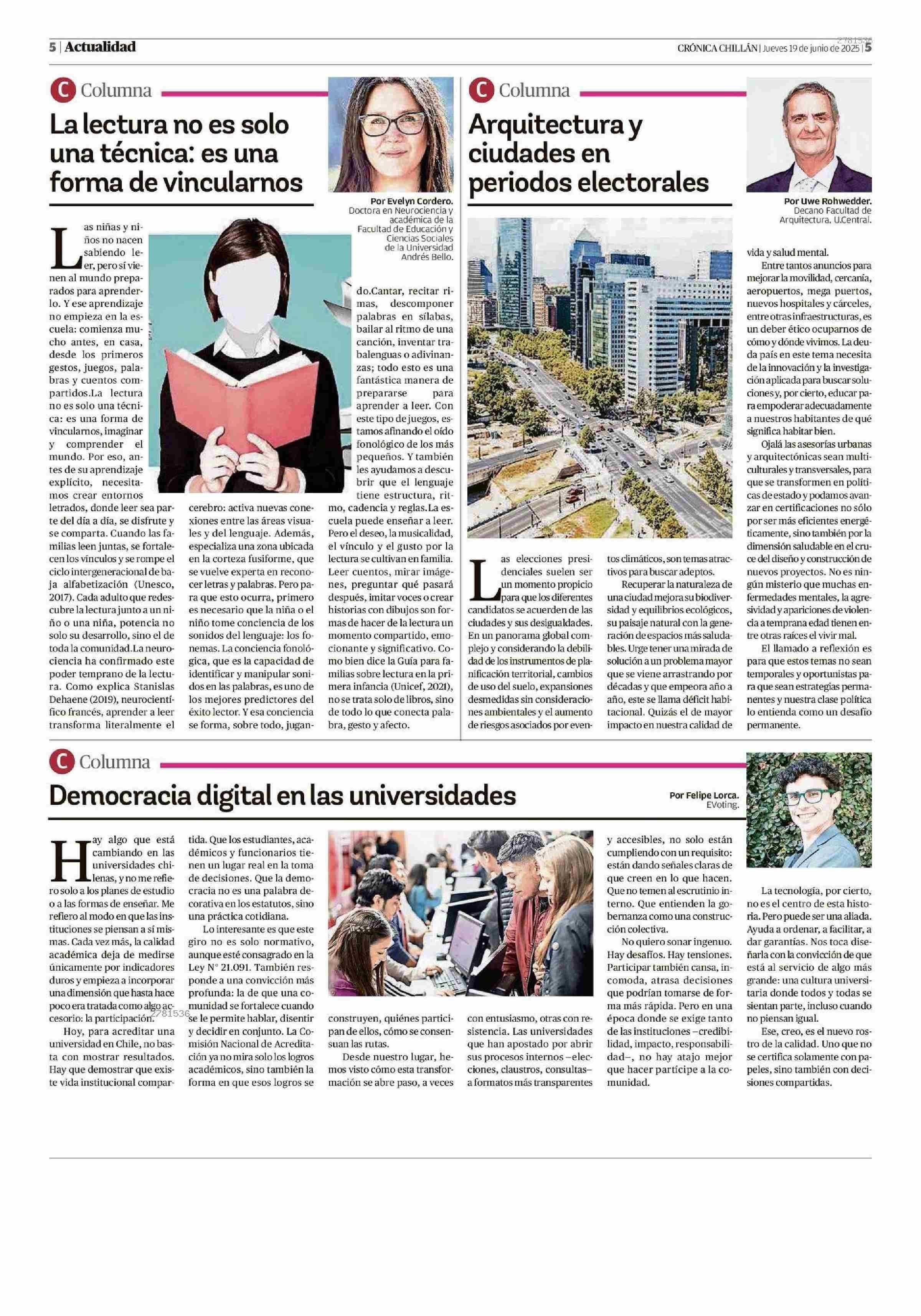 Columnas de Opinión: Arquitectura y periodos electorales ciudades en 19-06-2025 Crónica de Chillán |