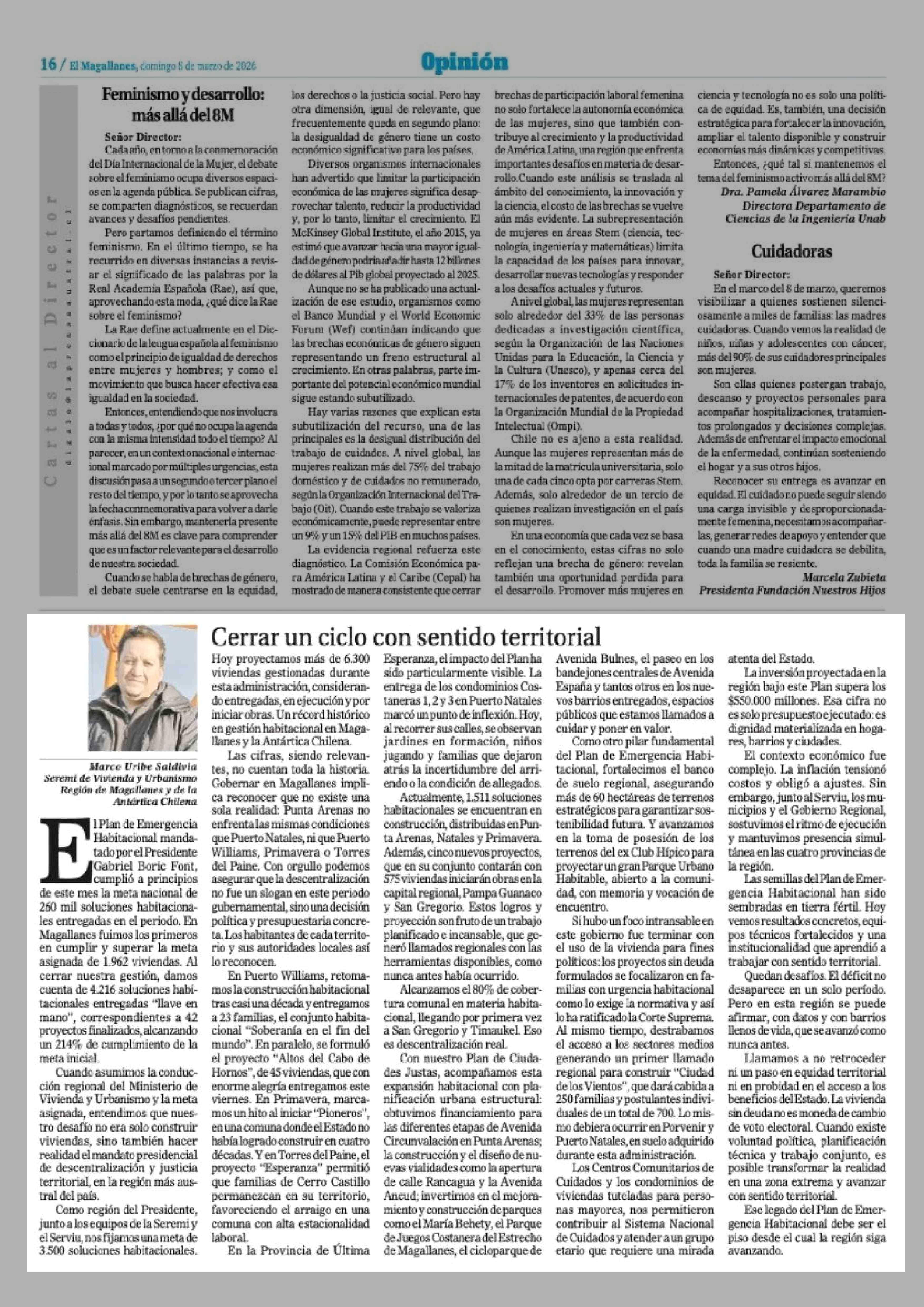 Columnas de Opinión: Cerrar un ciclo con sentido territorial 08-03-2026 El Magallanes |
