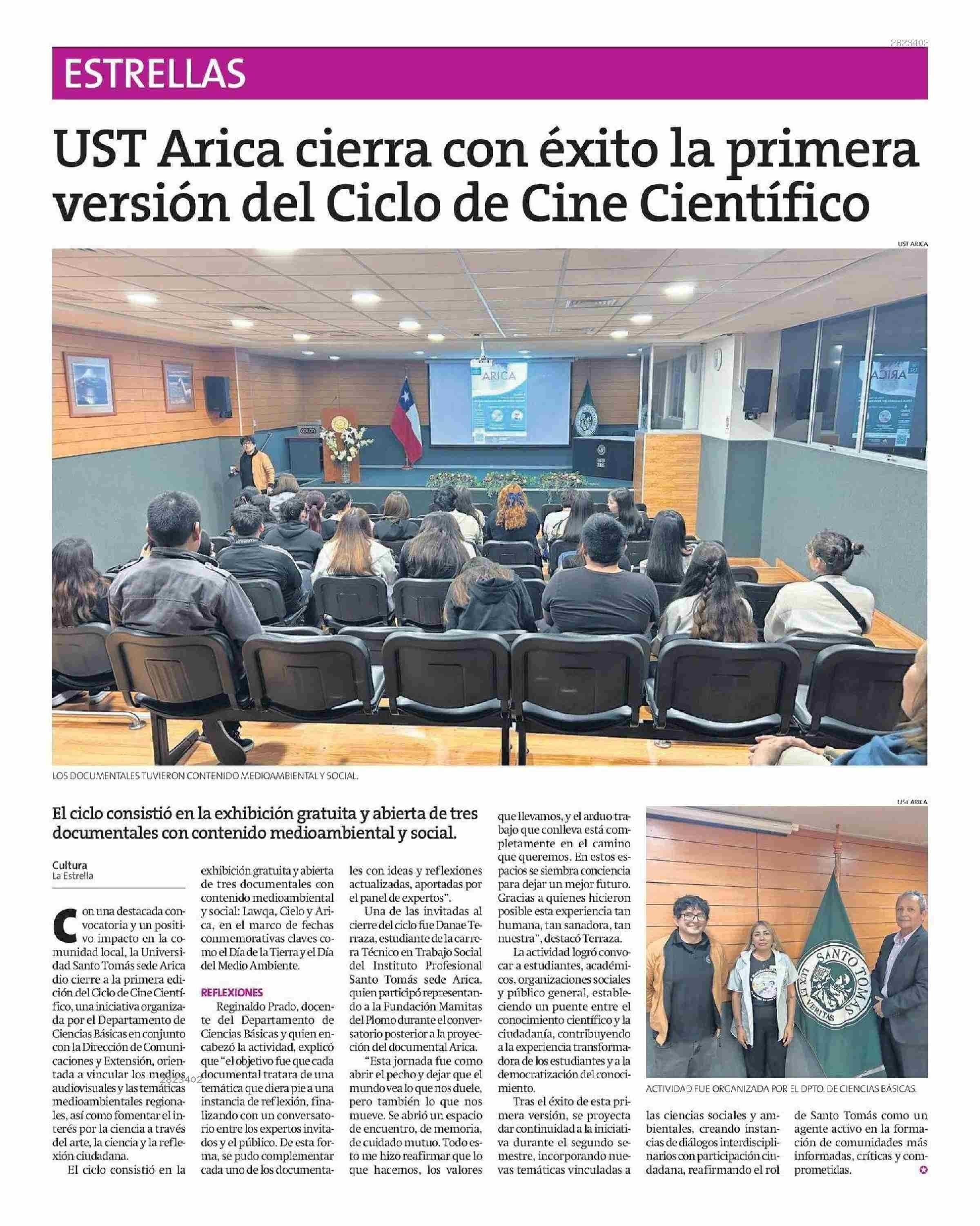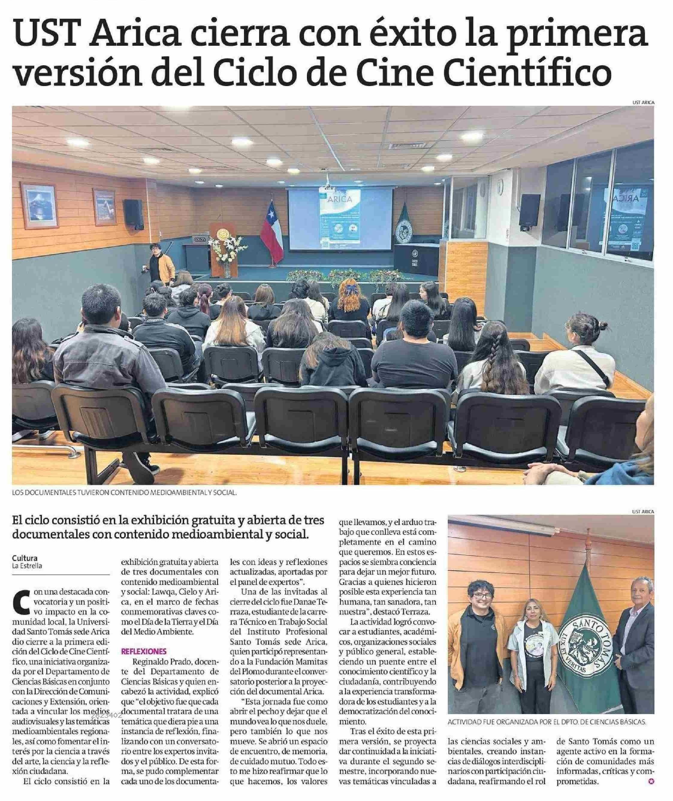 UST Arica cierra con éxito la primera versión del Ciclo de Cine Científico 20-06-2025 La Estrella de Arica |