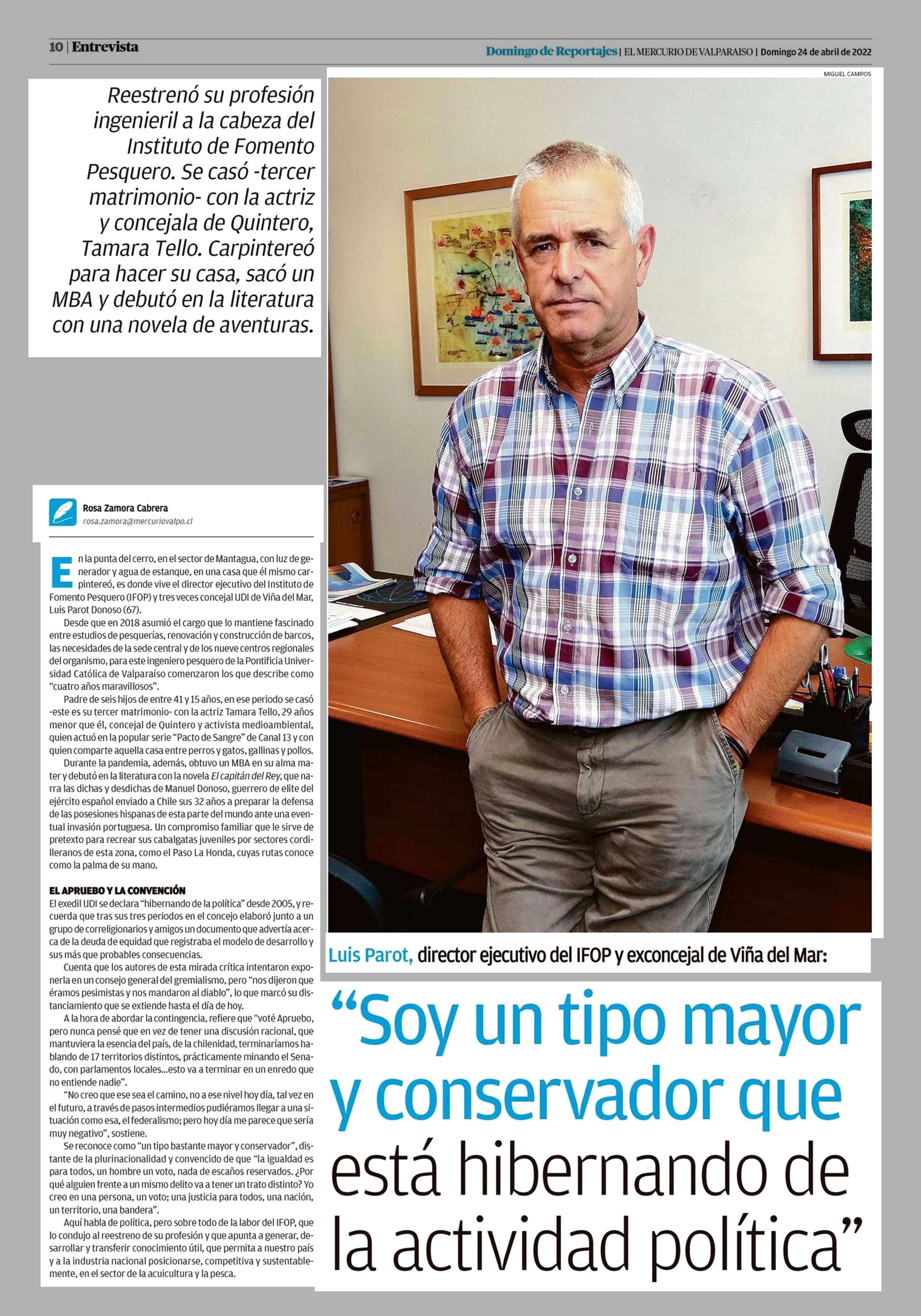 “Soy un tipo mayor v conservador que esta hibernando de la actividad política” 24-04-2022 El Mercurio de Valparaíso |