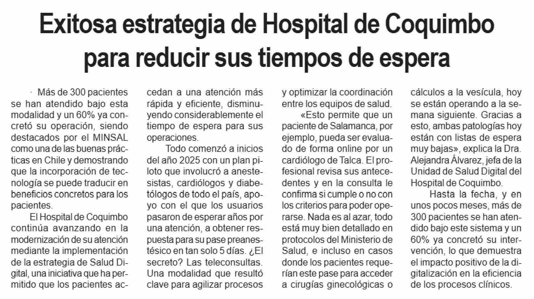 Título: Exitosa estrategia de Hospital de Coquimbo para reducir sus tiempos de espera