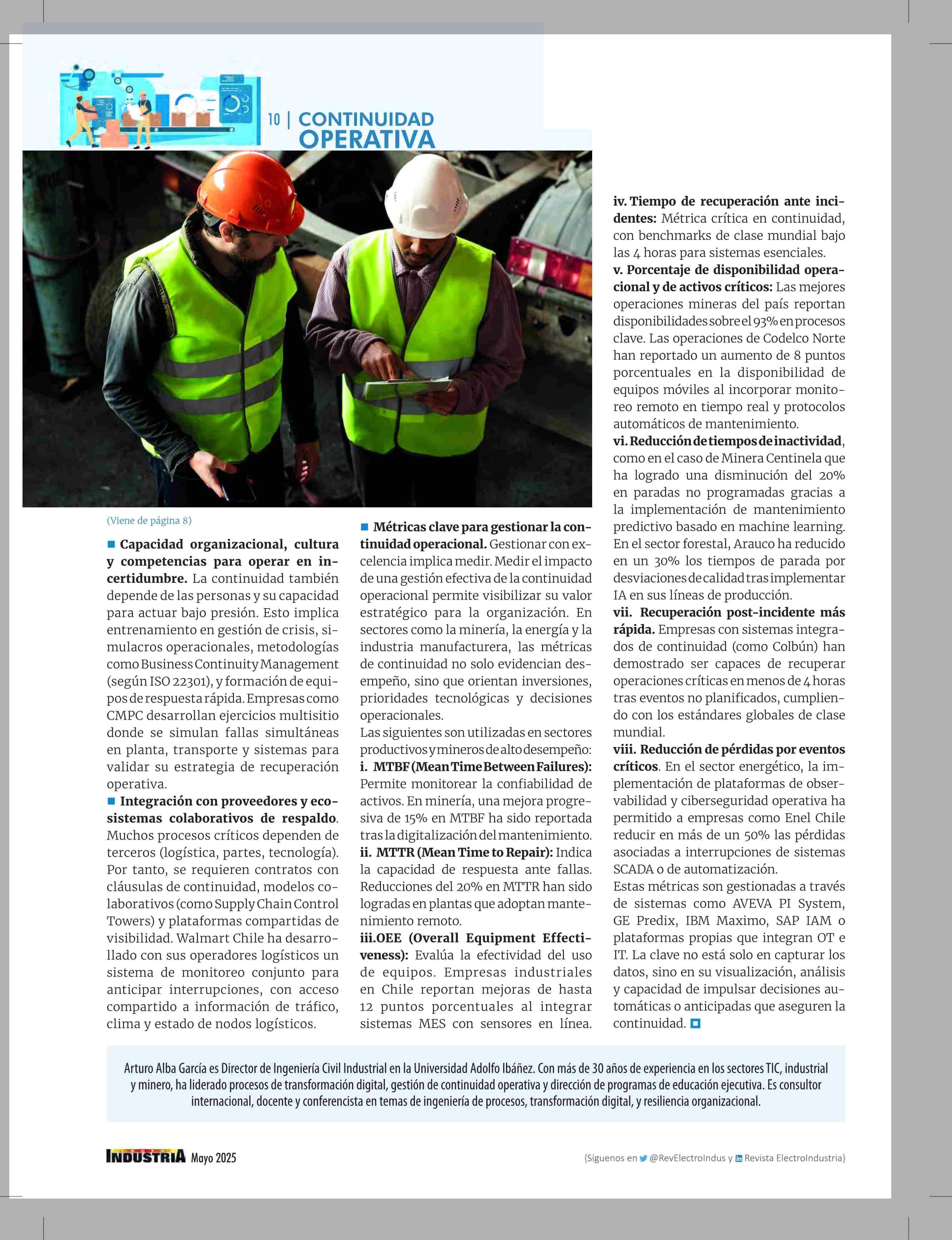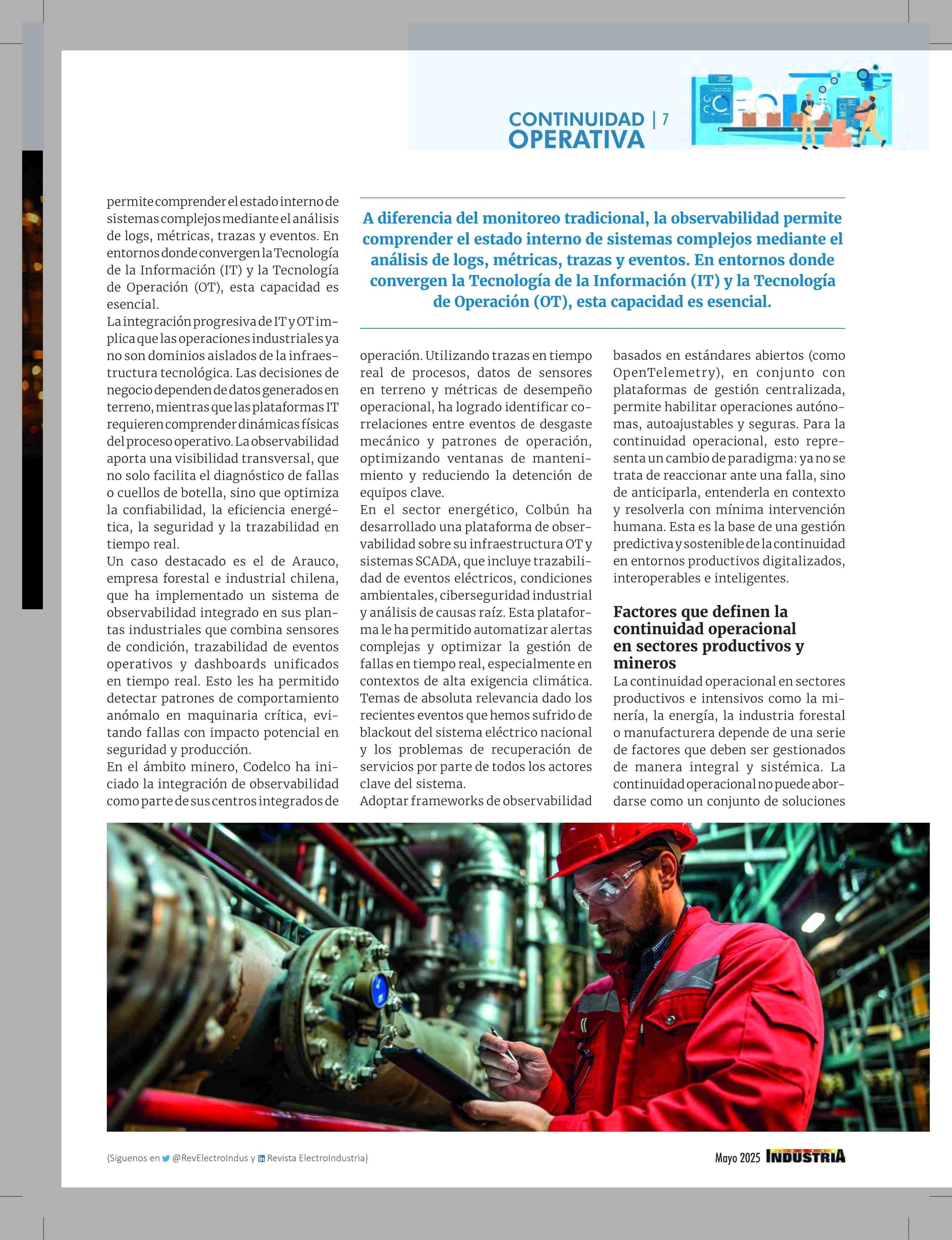 Continuidad operacional: La nueva frontera estratégica de las industrias resilientes 29-05-2025 Revista Electro Industria |