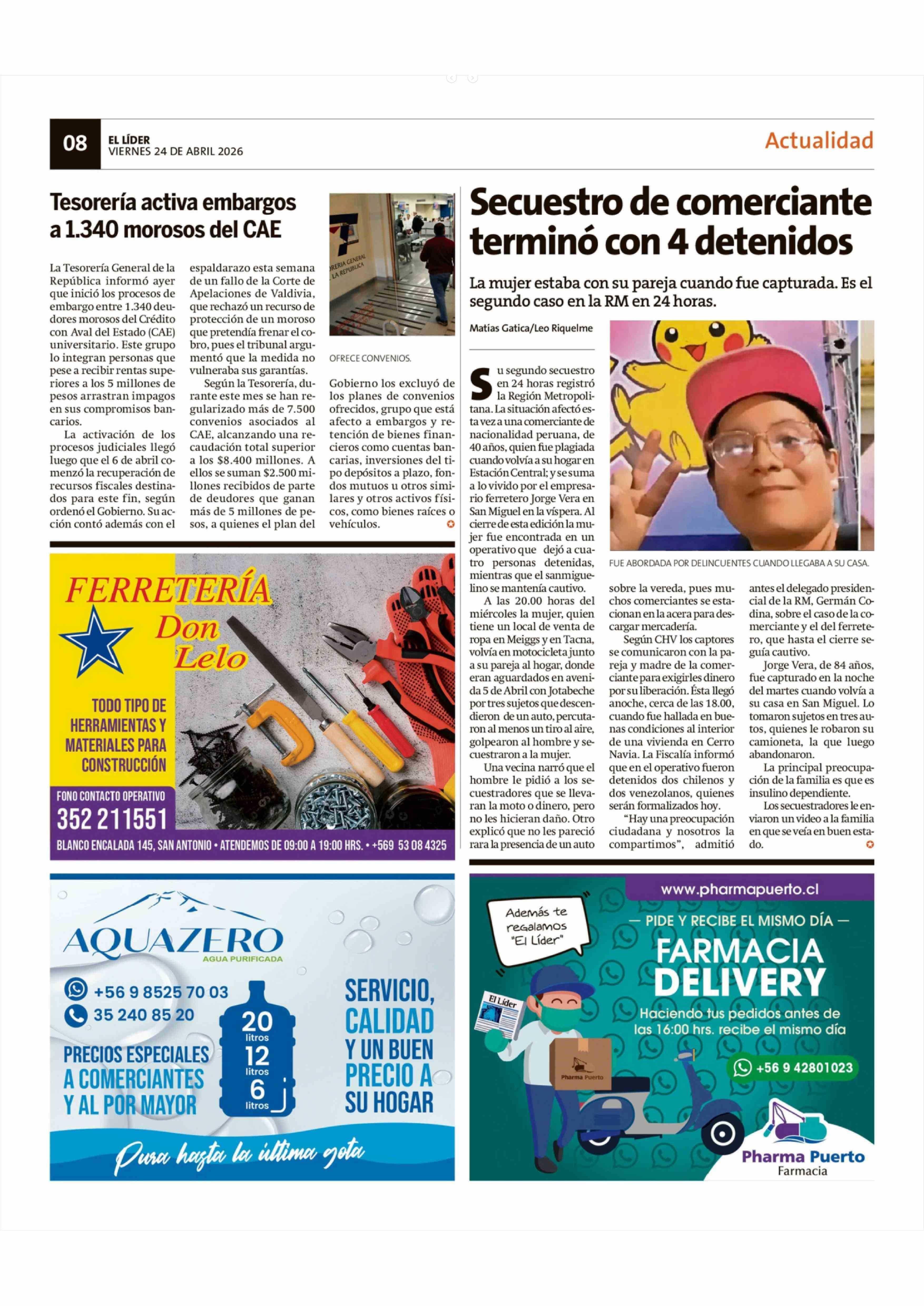 Tesorería activa embargos a 1.340 morosos del CAE 24-04-2026 El Líder |