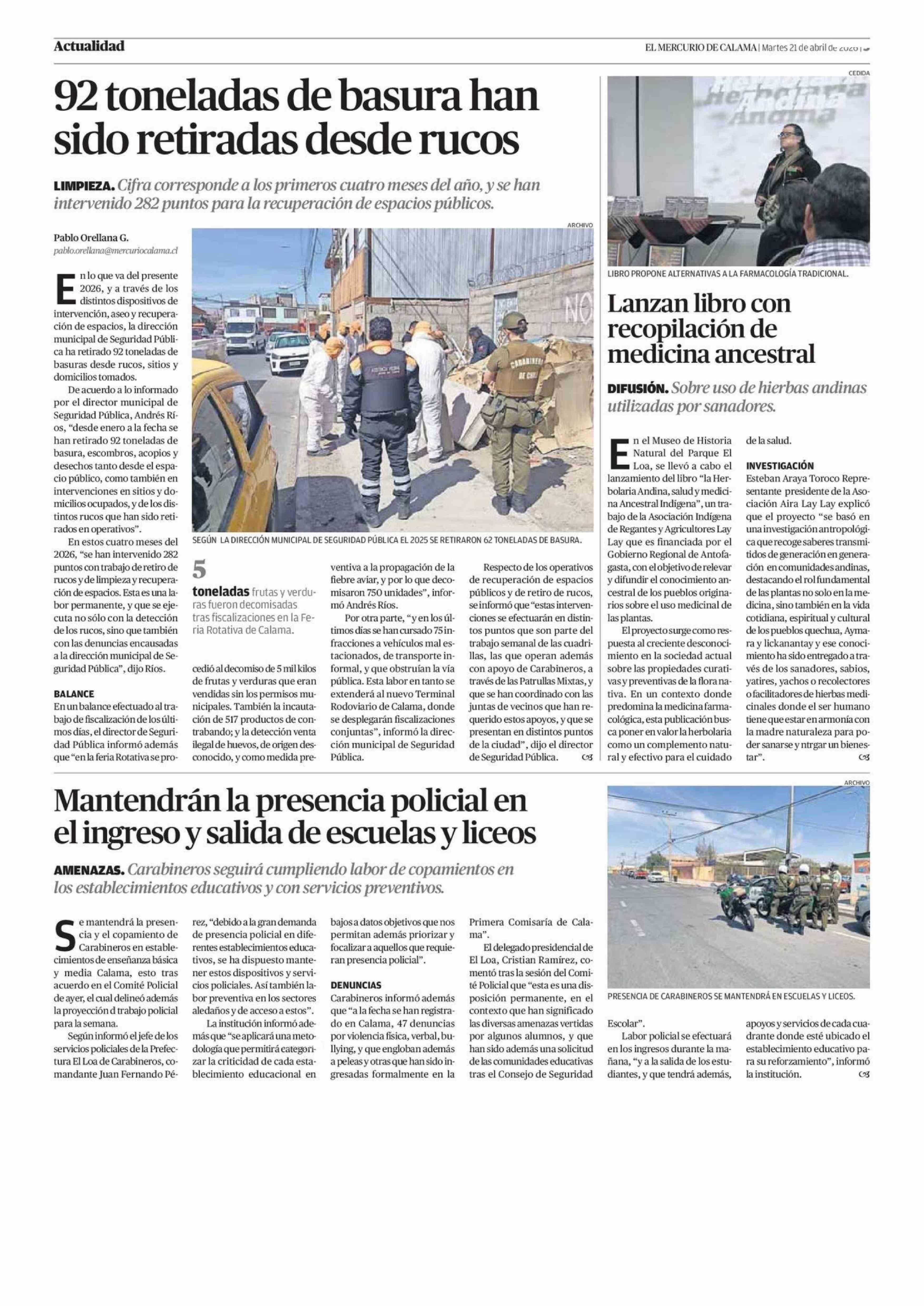 | Fecha: | 21-04-2026 | Sector: | Noticia general | Región: | Región de Antofagasta |