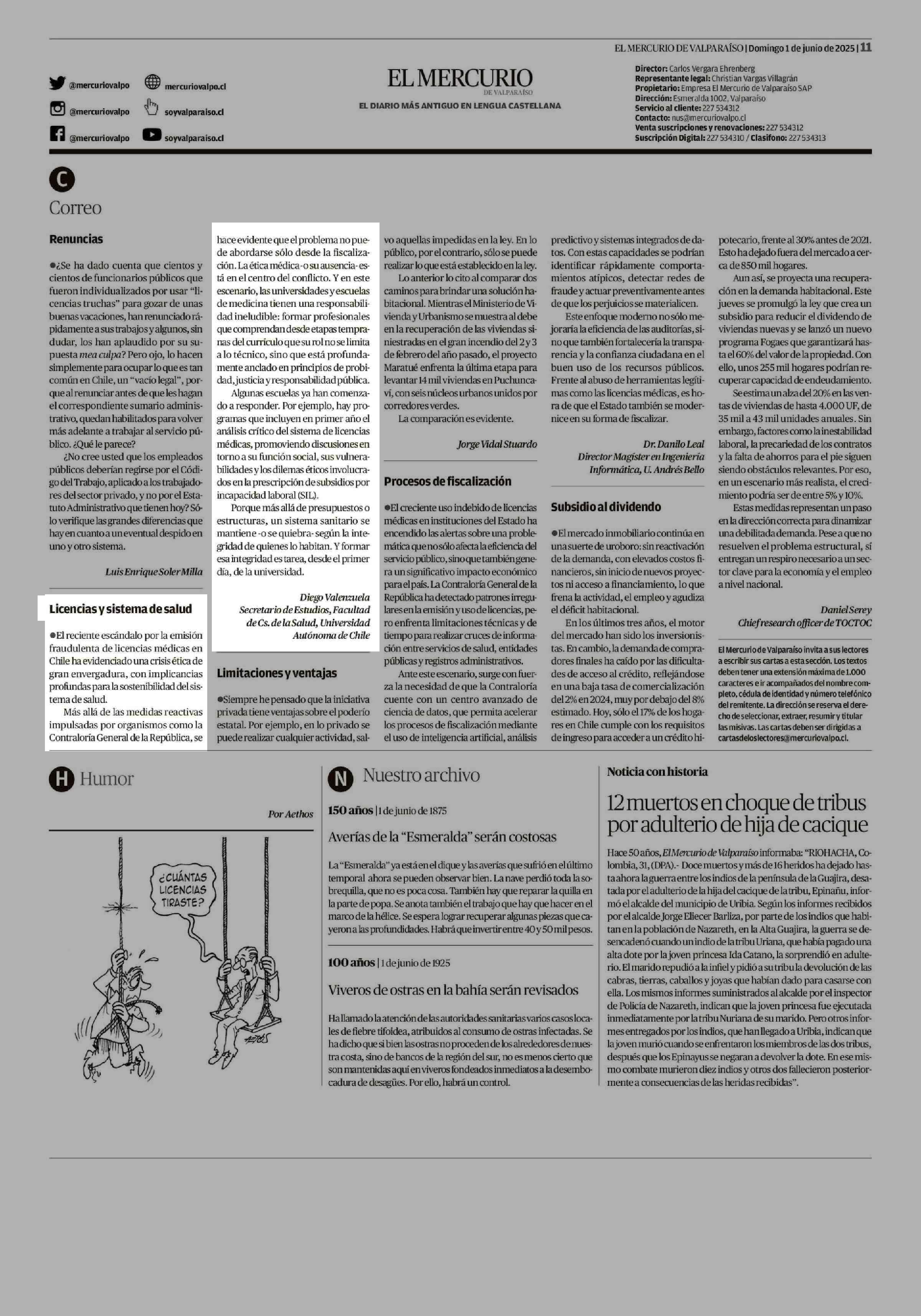 Licencias y sistema de salud 01-06-2025 El Mercurio de Valparaíso |