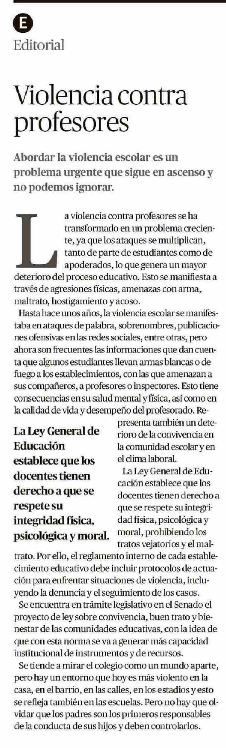 Editorial: Violencia contra profesores 14-06-2025 Crónica de Chillán |