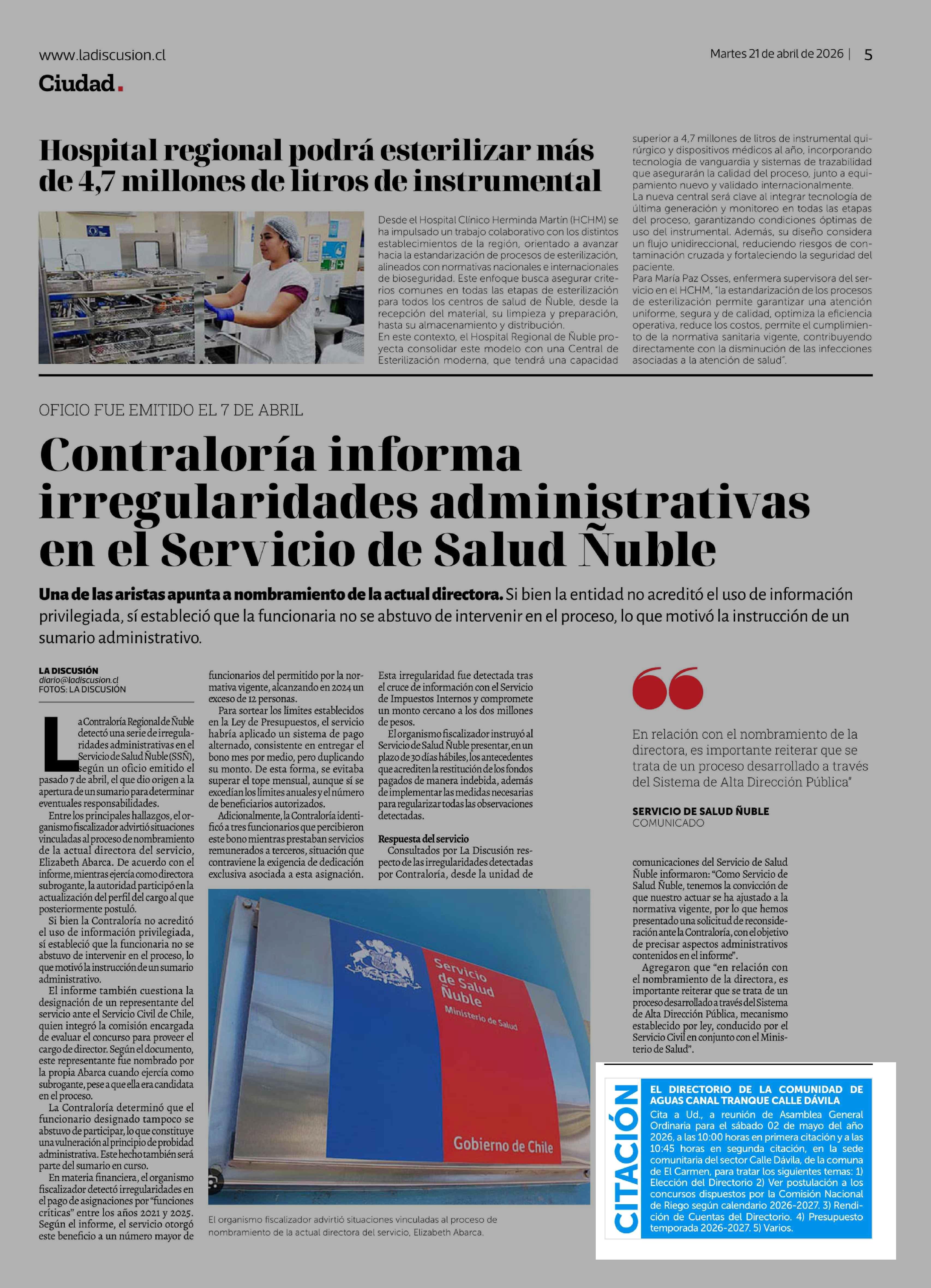 Fecha: 21-04-2026 Sector: Noticia general Región: Región del Ñuble