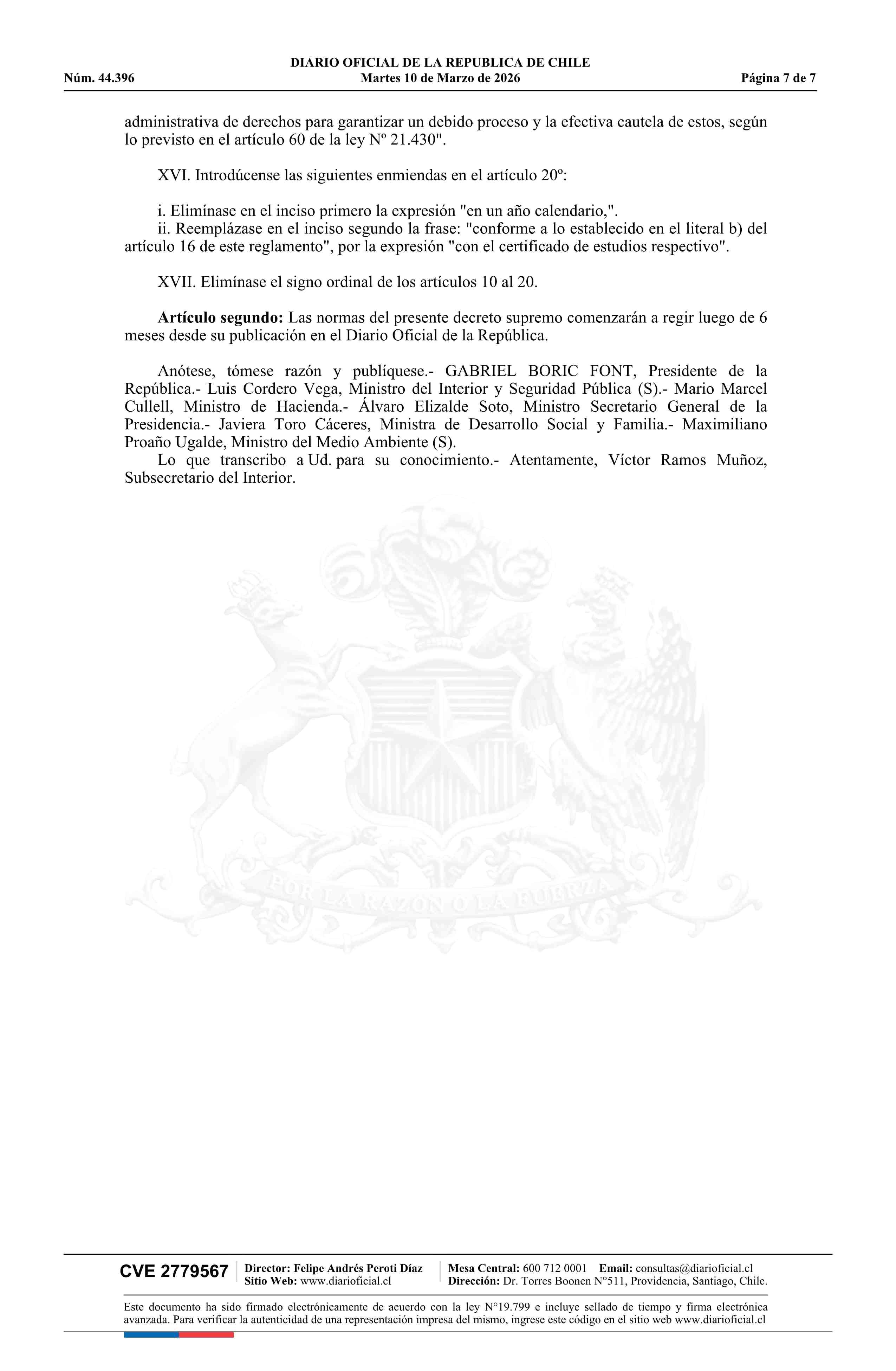 Fuente: Diario Oficial Edición Electrónica (Diario Oficial de Chile - 1 Normas Generales) Página(s): 1-7