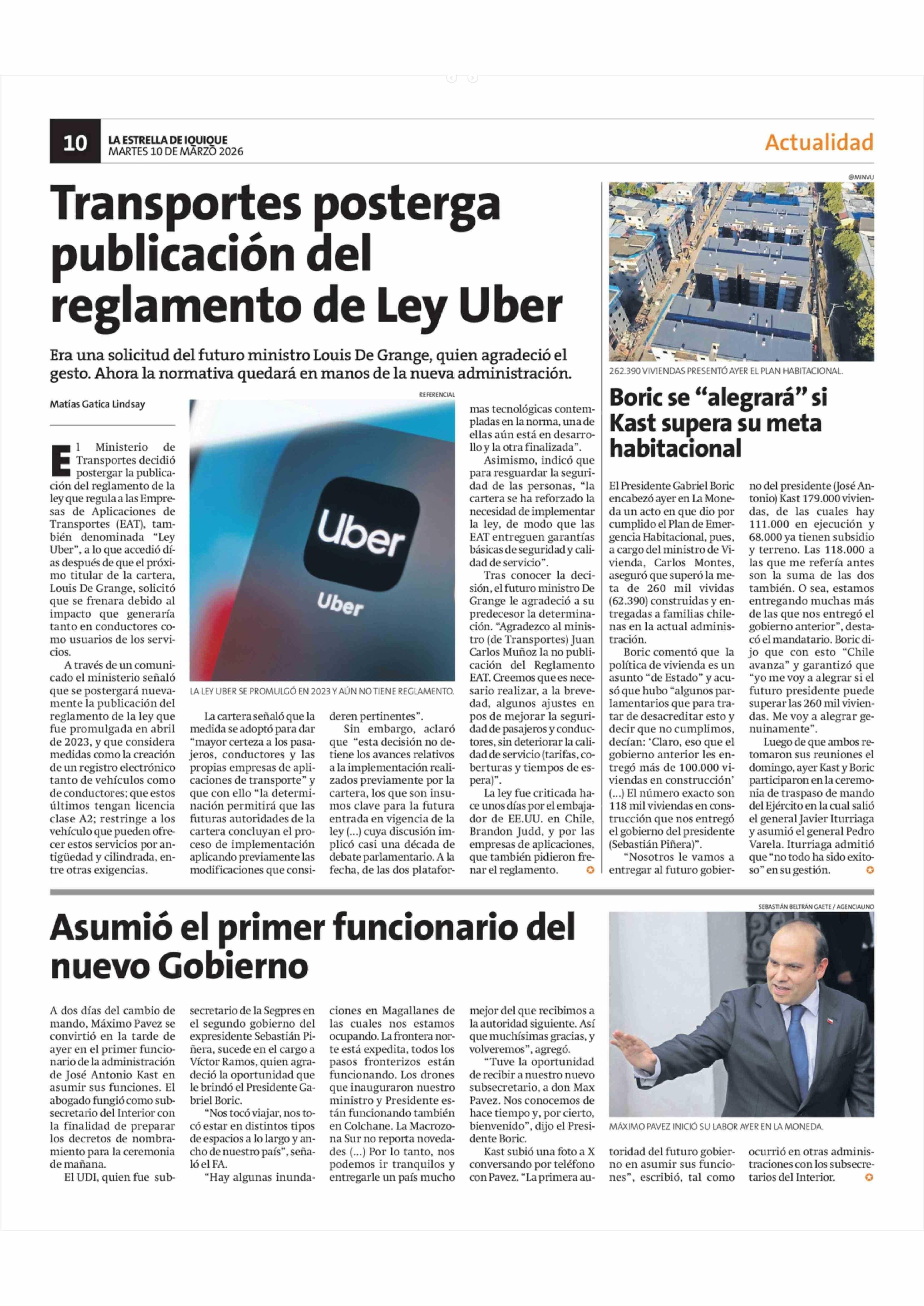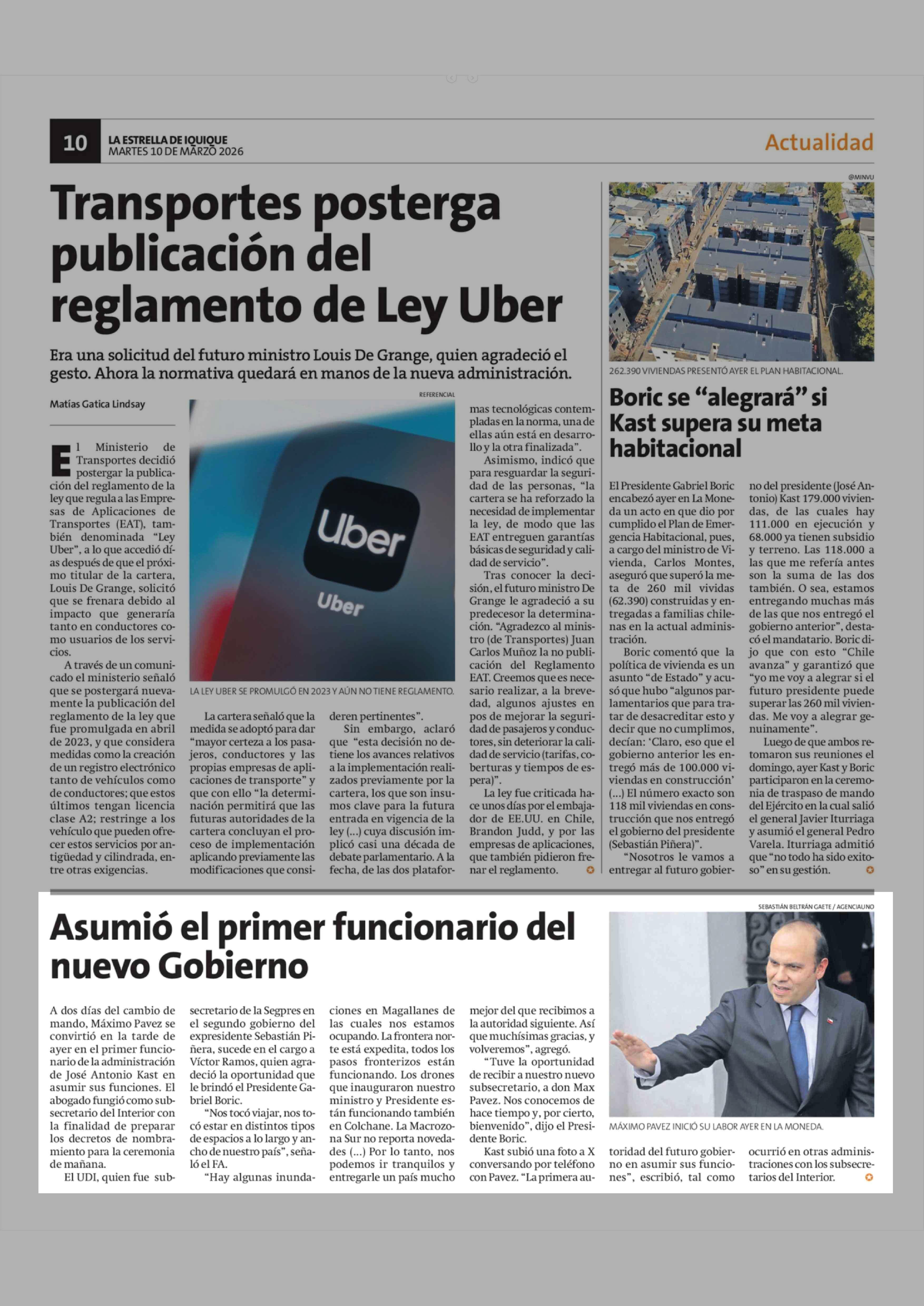 Asumió el primer funcionario del nuevo Gobierno 10-03-2026 La Estrella de Iquique |
