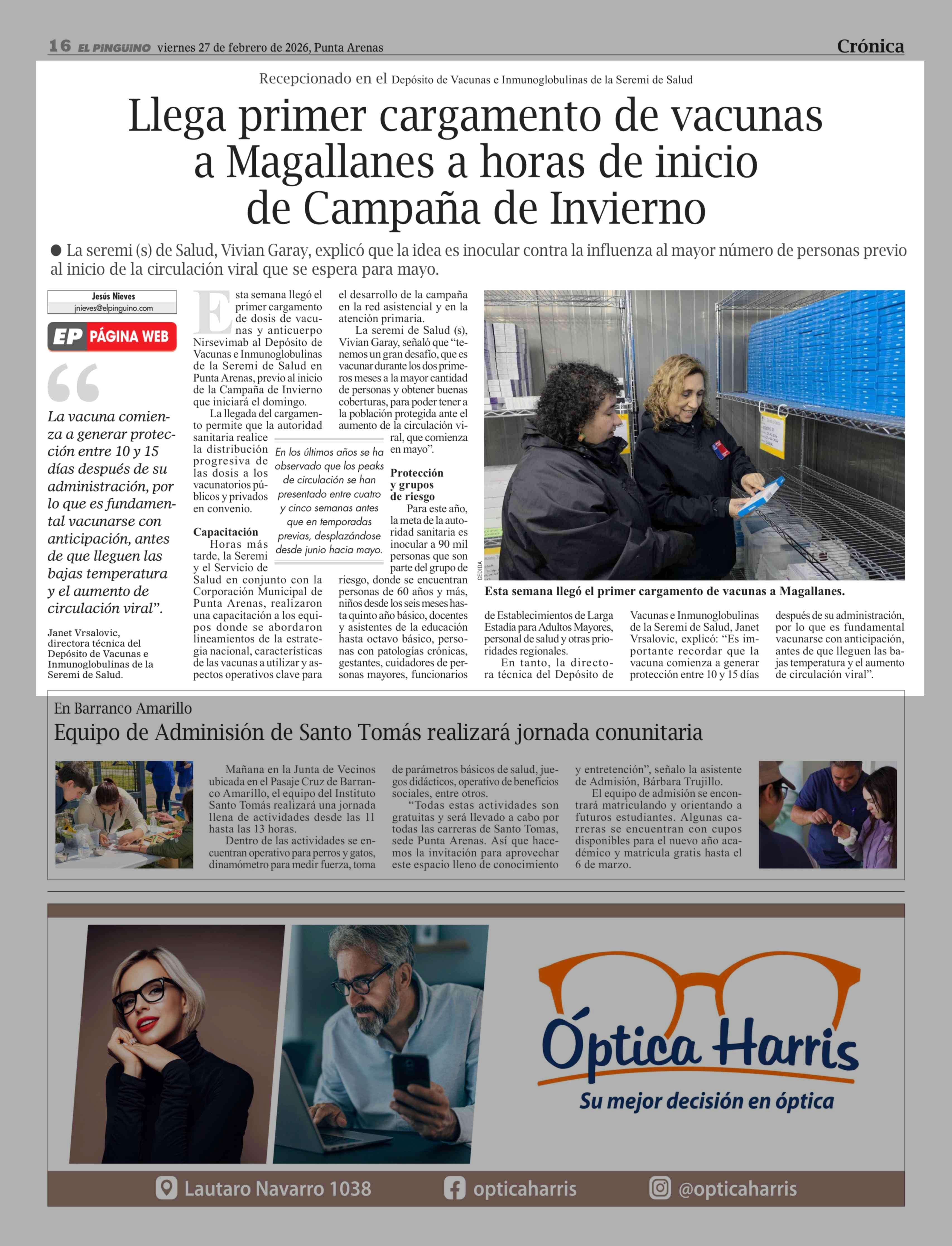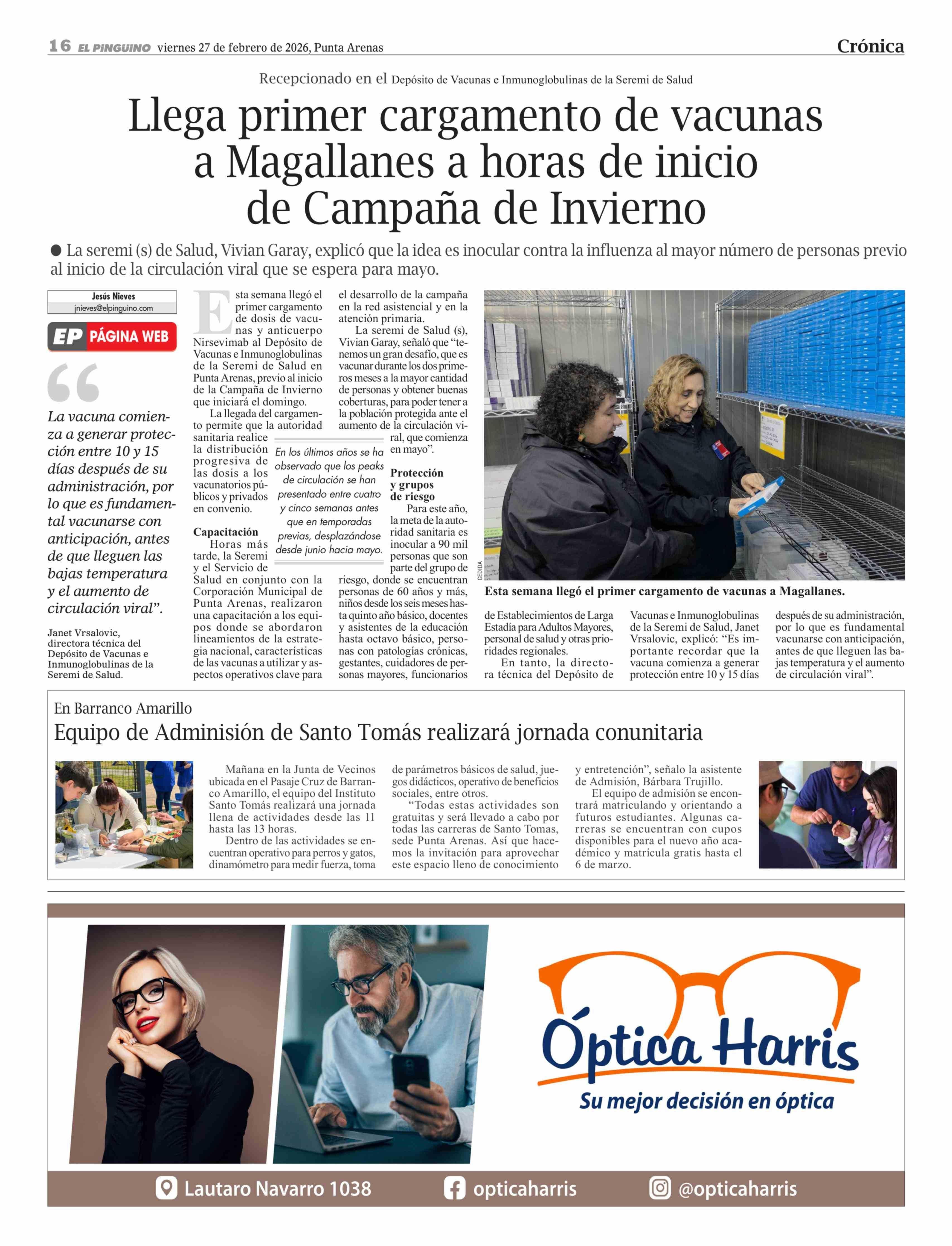 Llega primer cargamento de vacunas a Magallanes a horas de inicio de Campaña de Invierno 27-02-2026 El Pingüino |