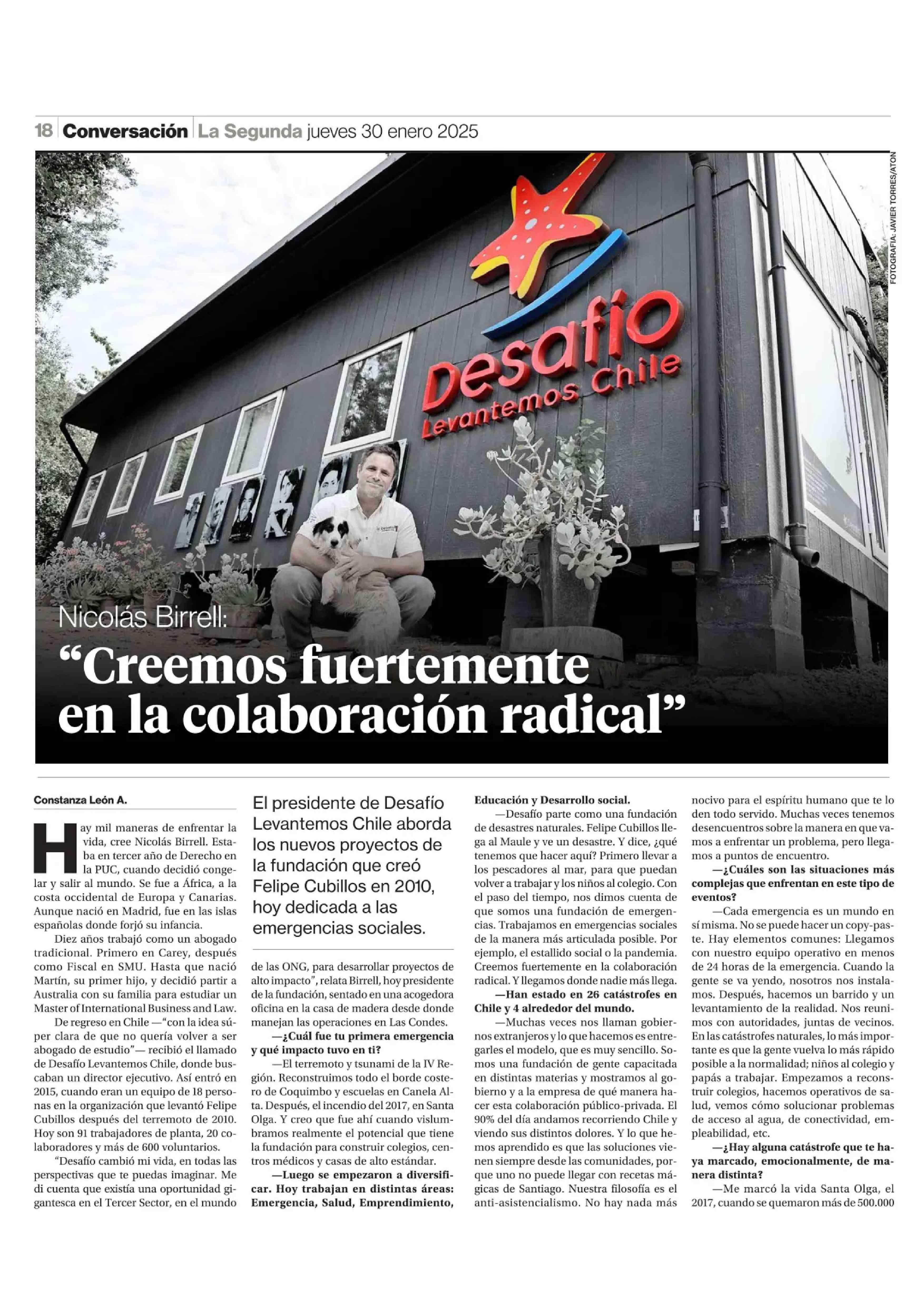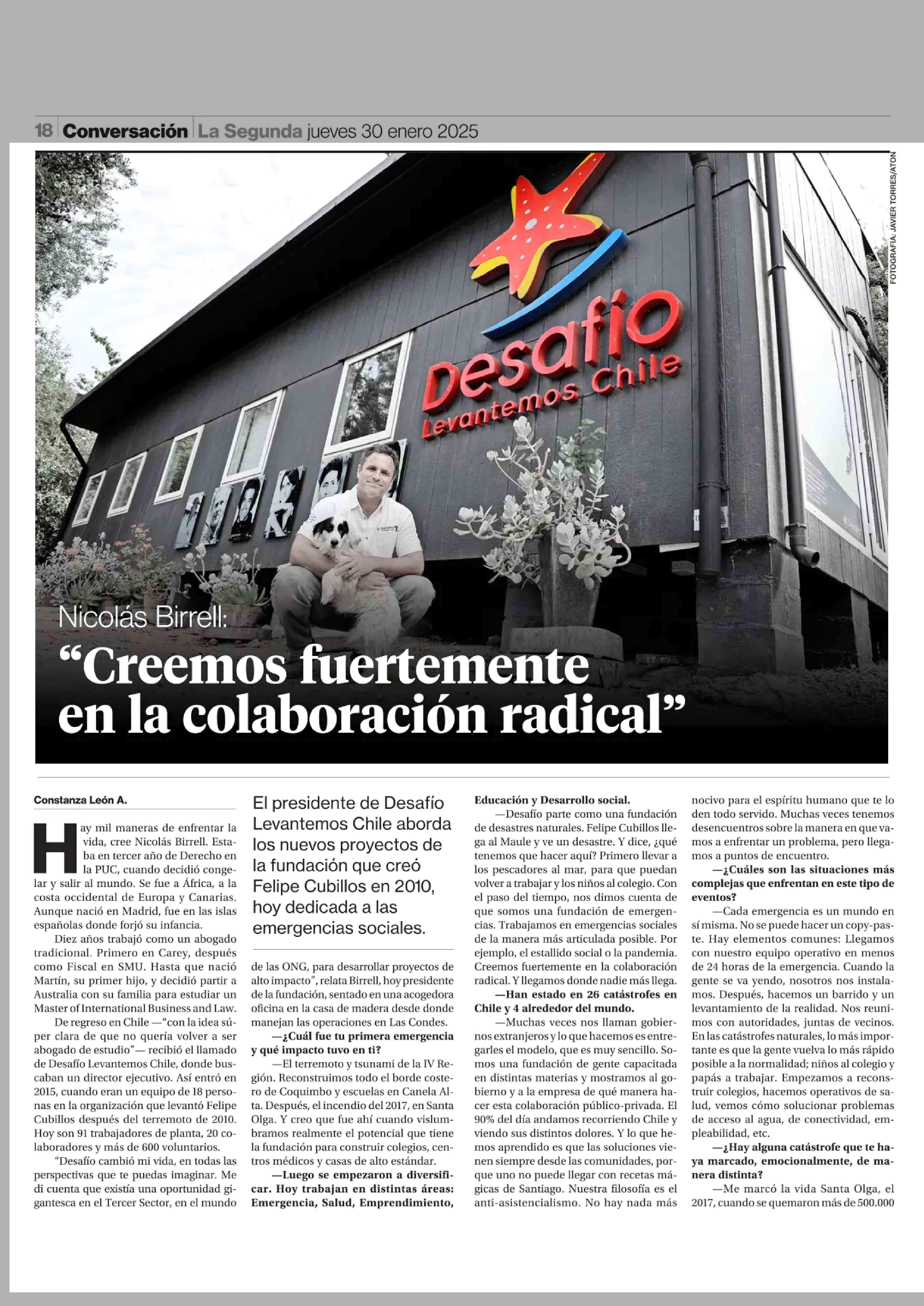 "Creemos fuertemente en la colaboración radical" 30-01-2025 La Segunda |