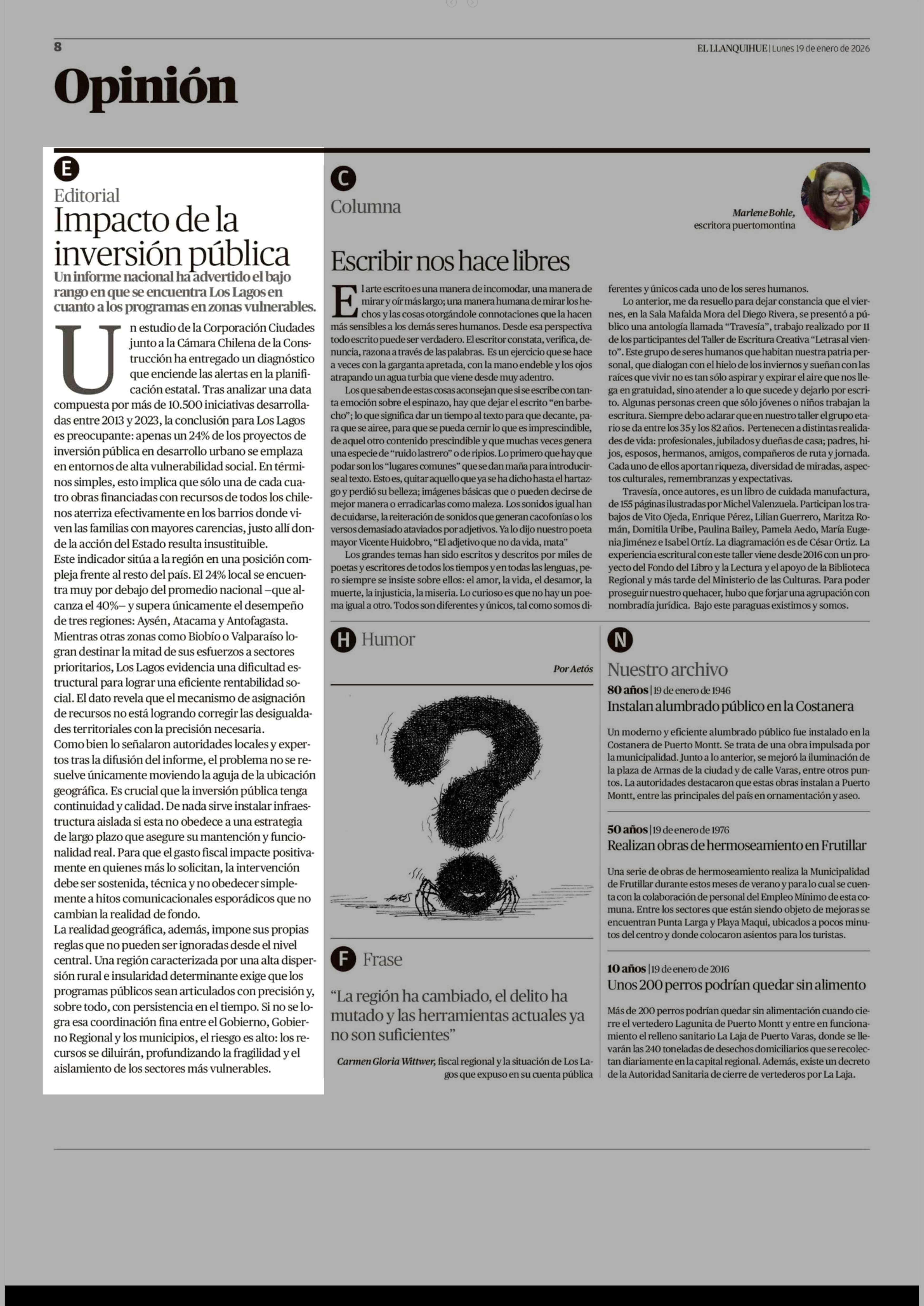 Fecha: 19-01-2026 Sector: Editorial Región: Región de Los Lagos