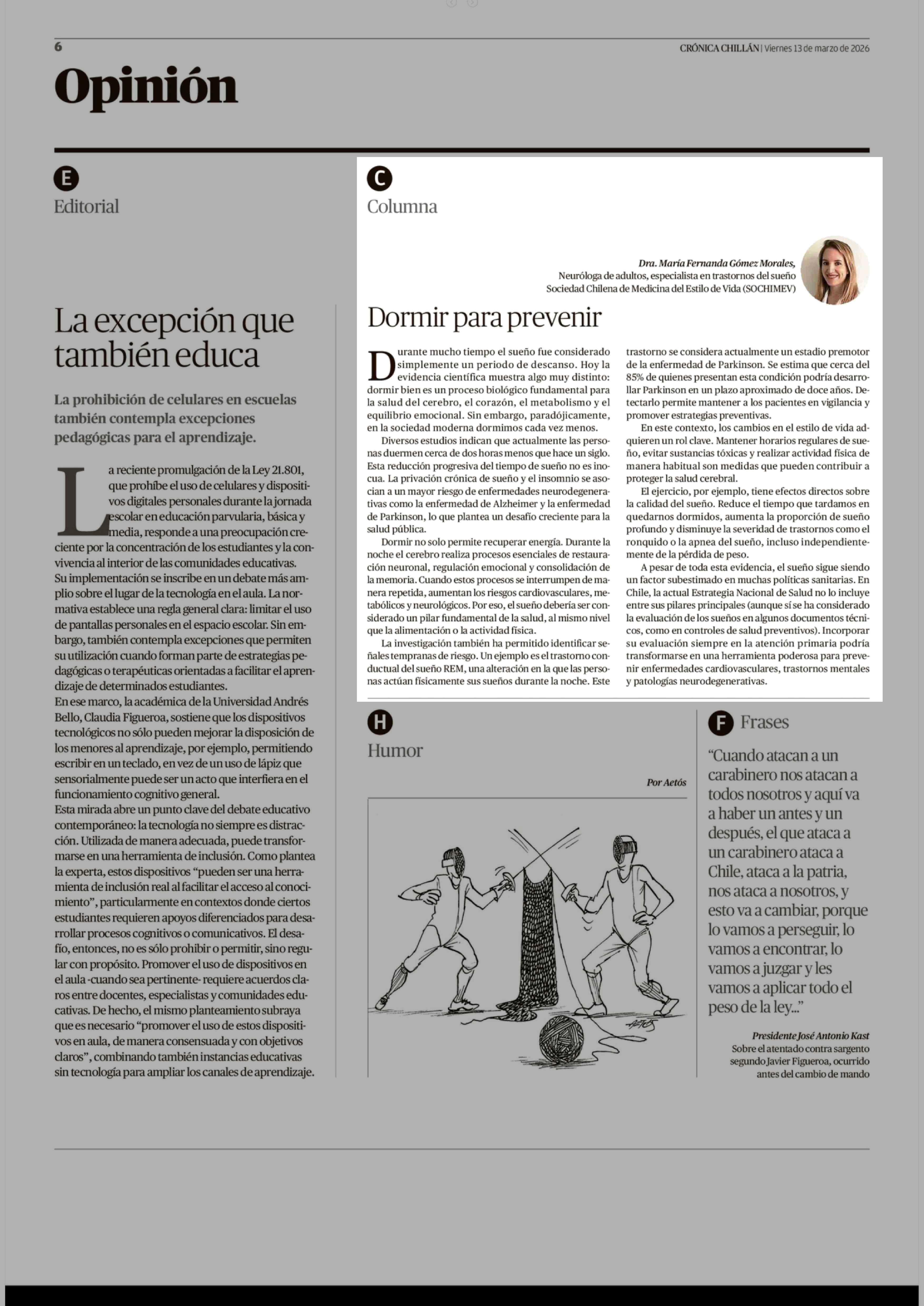Fecha: 13-03-2026 Sector: Columnas de Opinión Región: Región del Ñuble