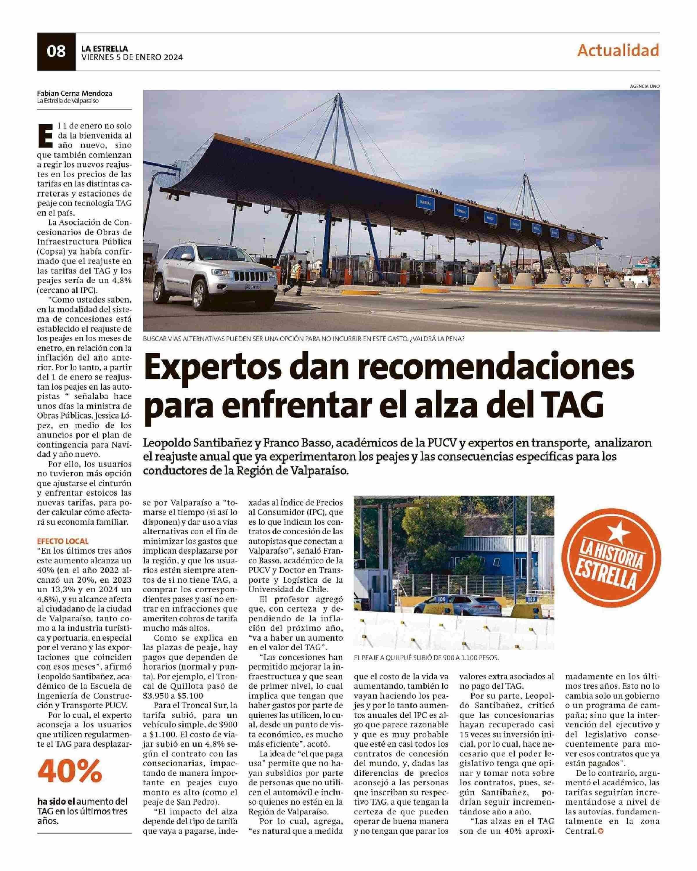Expertos dan recomendaciones para enfrentar el alza del TAG 05-01-2024 La Estrella de Valparaíso |
