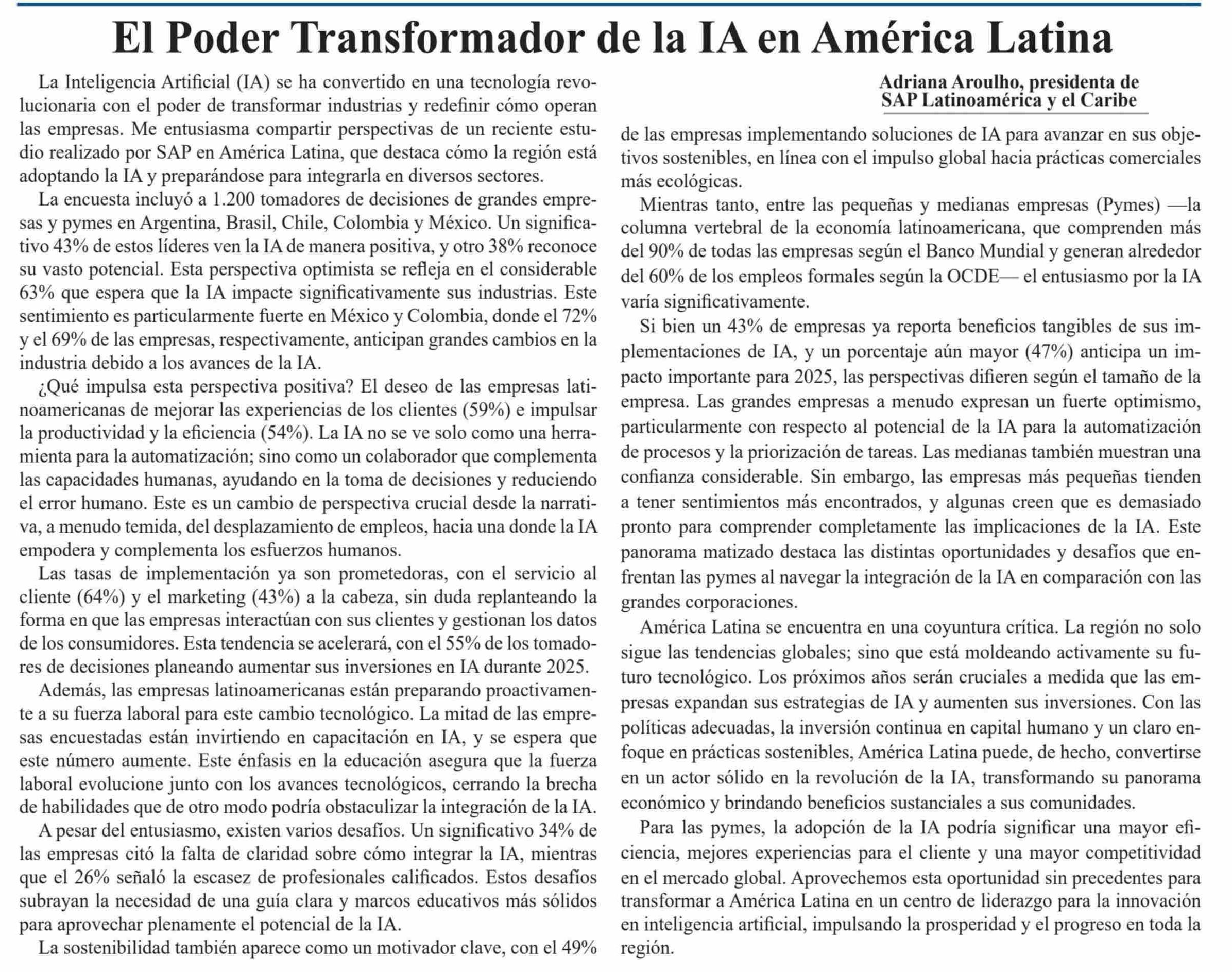 COLUMNAS DE OPINIÓN: El Poder Transformador de la IA en América Latina 07-06-2025 El Heraldo |