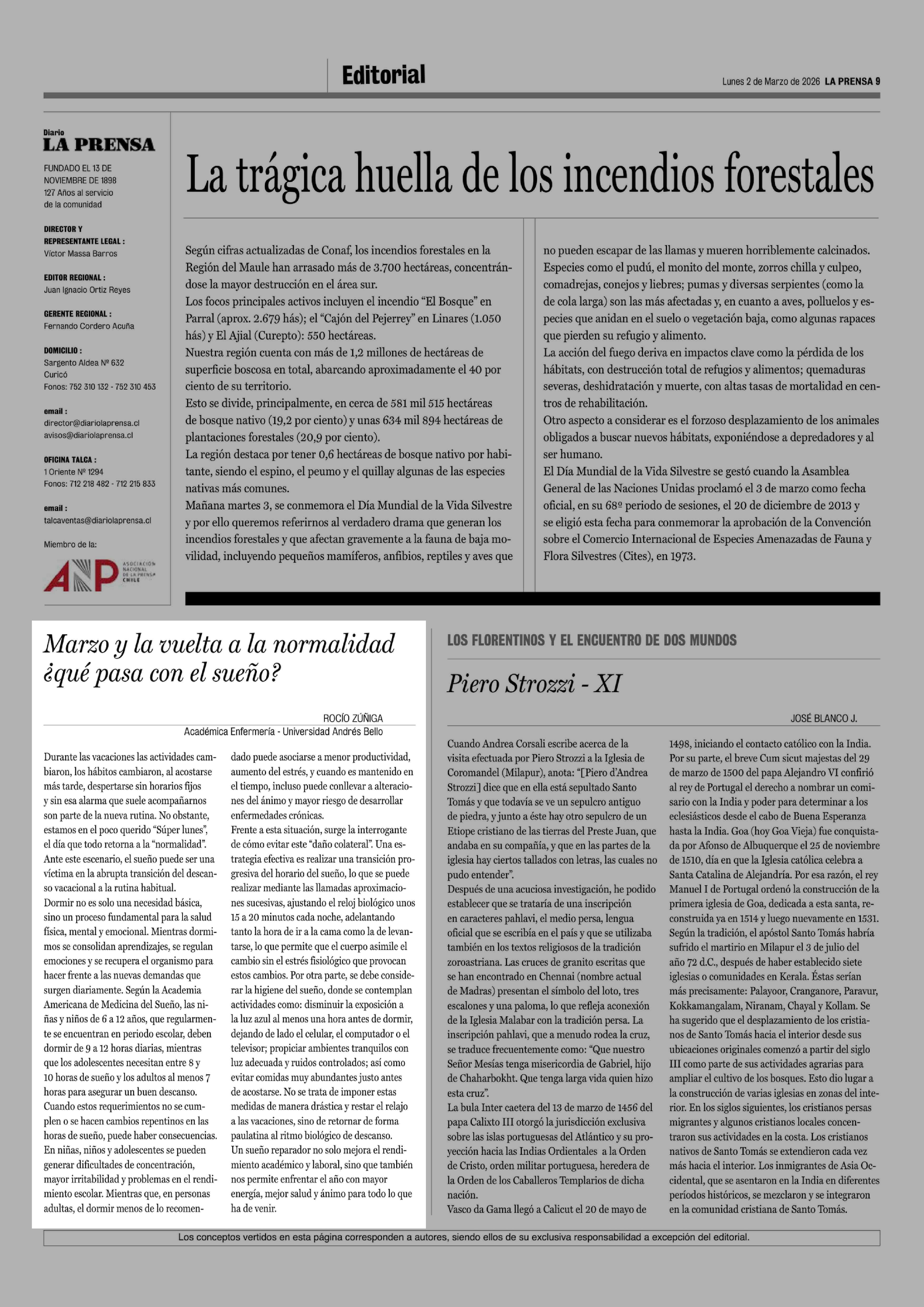 Cartas: Marzo y la vuelta a la normalidad ¿qué pasa con el sueño? 02-03-2026 La Prensa de Curicó |