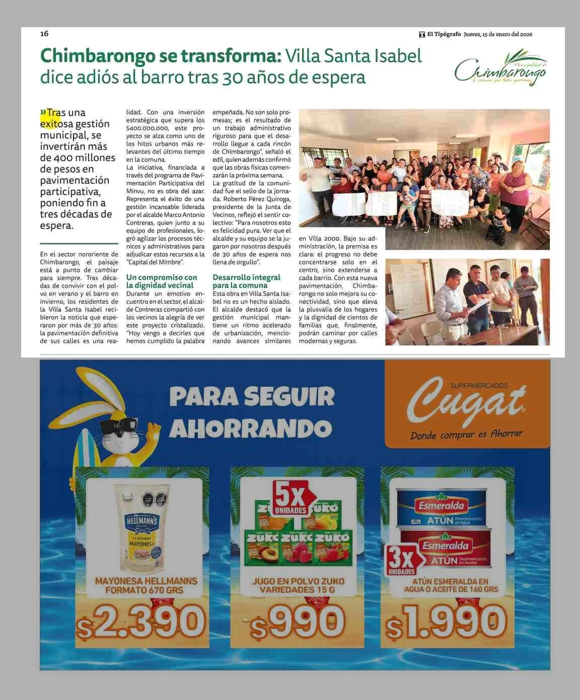 Chimbarongo se transforma: Villa Santa Isabel dice adiós al barro tras 30 años de espera 15-01-2026 El Tipógrafo |
